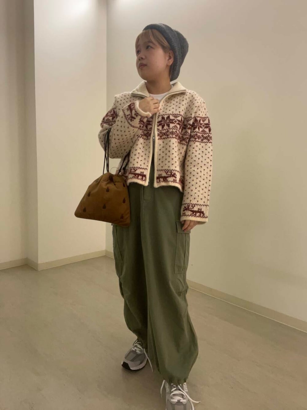 ノルディック柄が目を惹くブルゾンニットはアウターとしてもトップスとしても活躍してくれます🫧✨