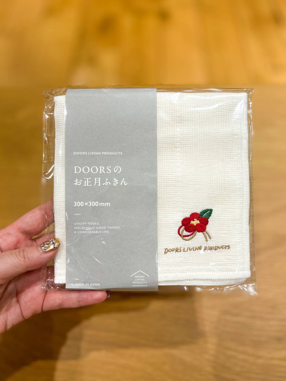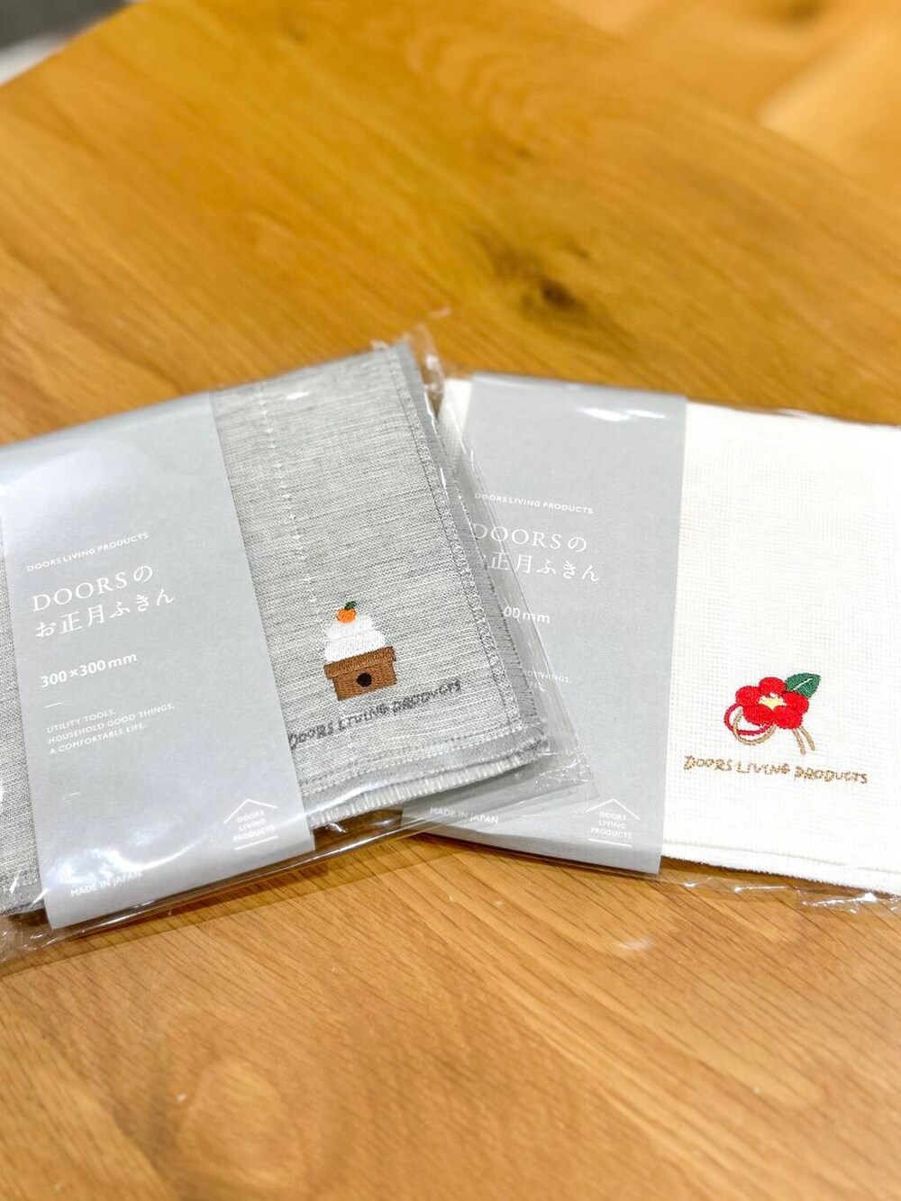 梅や鏡餅の刺繍がかわいいお正月ふきんは、