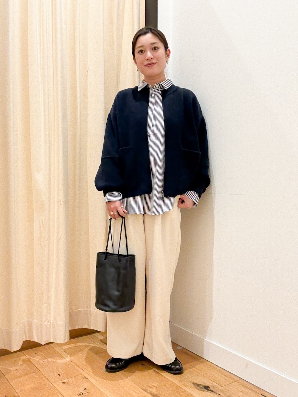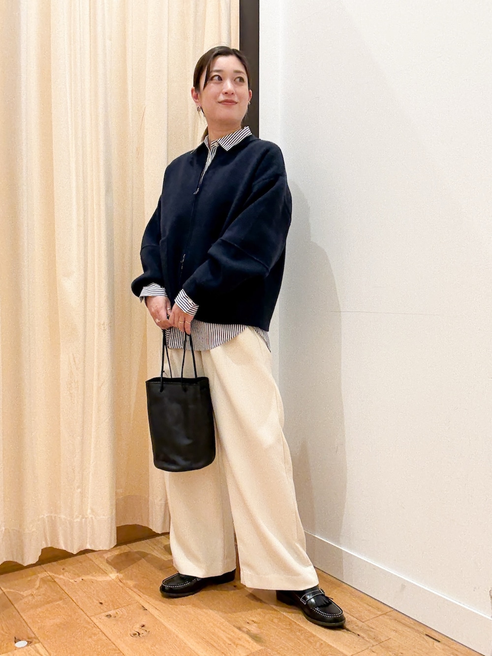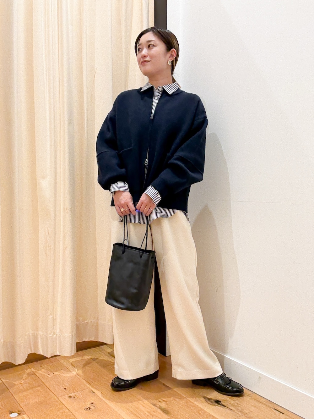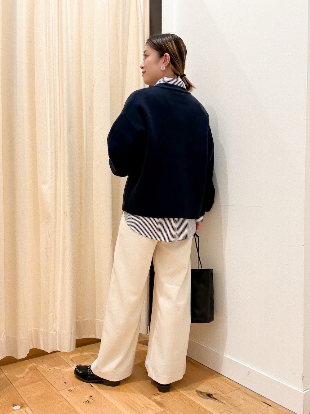 ウエストはゴム無しのタイプなのでキレイめスタイルでの合わせにもオススメです◎