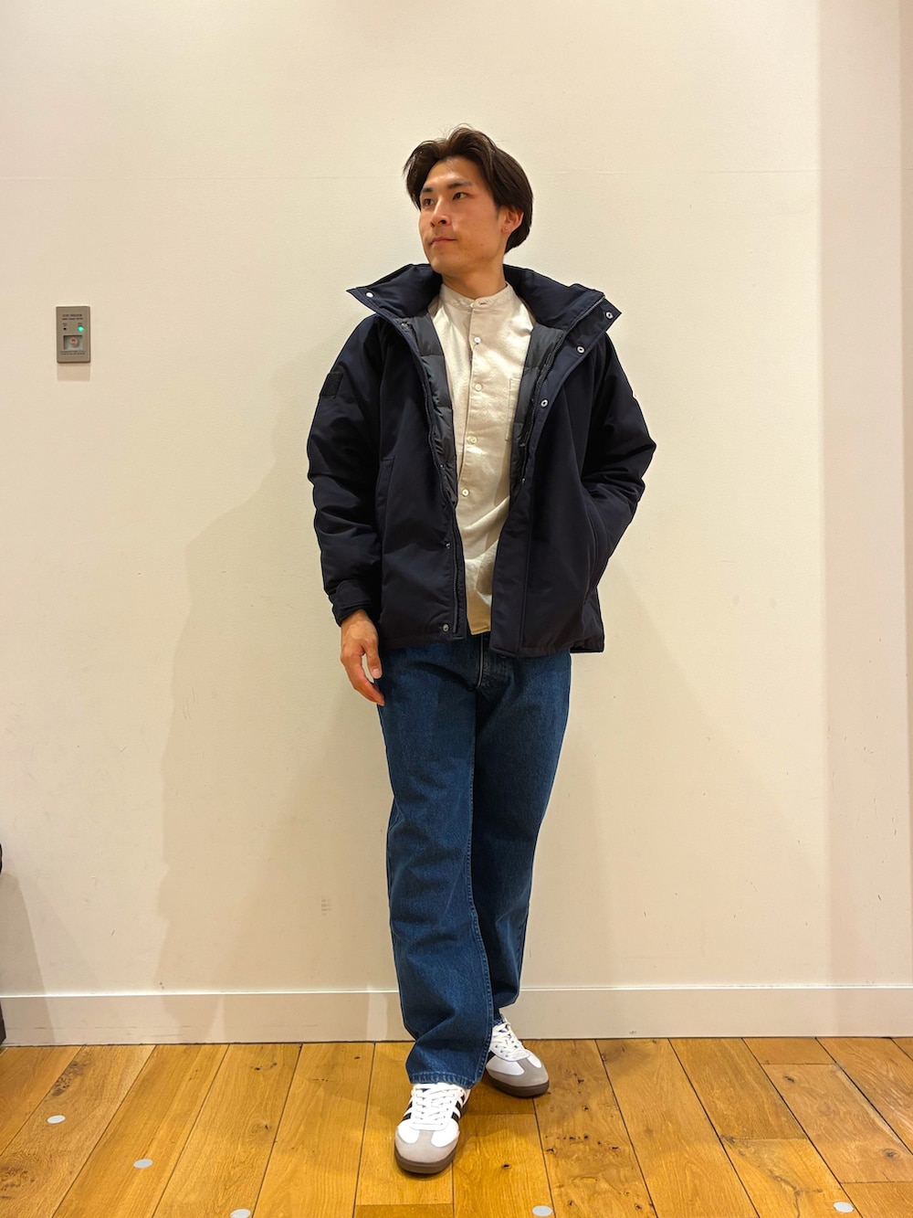 ゆったり目ので背中に大きなポケットがついた特徴的なダントンのジャケットにレギュラーカラーのシャツを着ています!パンツは落ち着いた雰囲気が出るように少し明るいジーンズにしています!