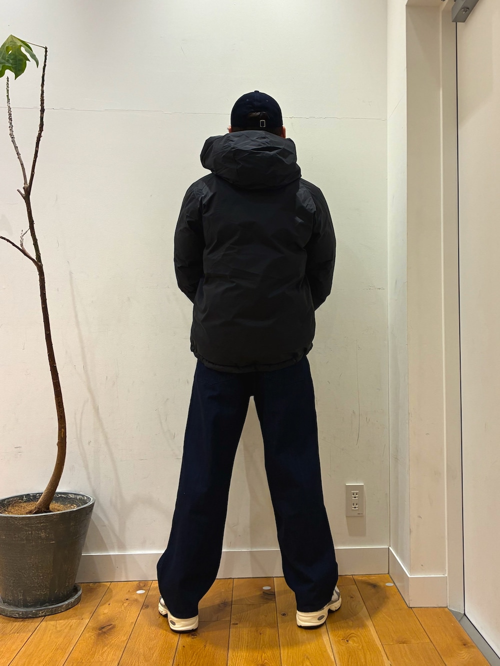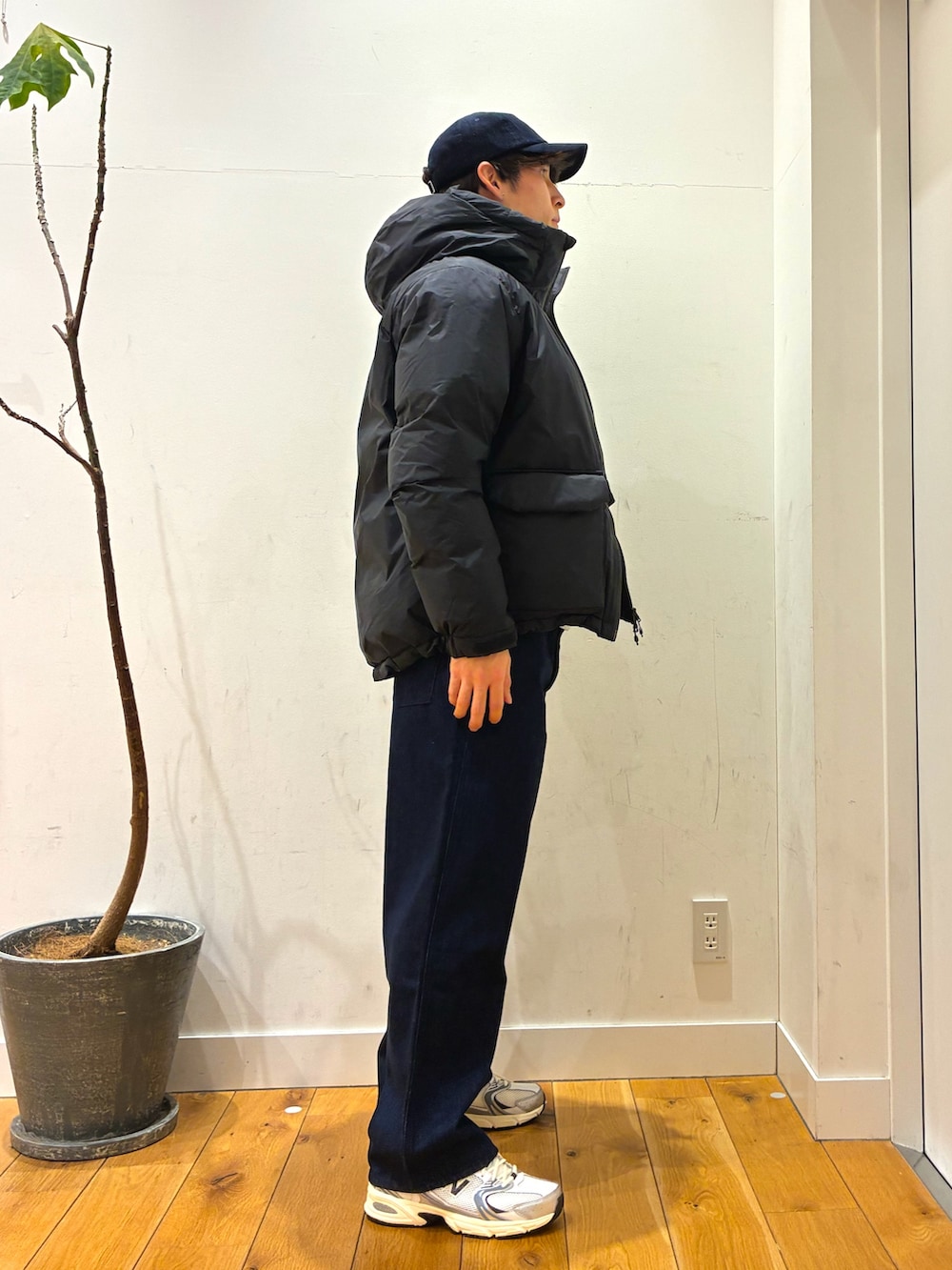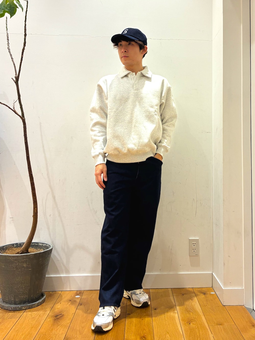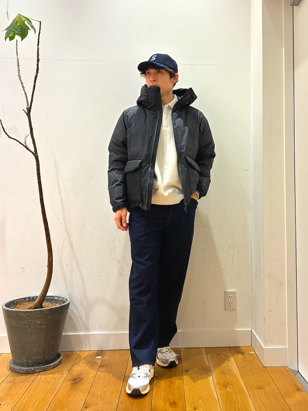 ハーフボタンになっている裏起毛で暖かいトレーナーにナンガAurora Texのポケットが特徴的なダウンを着ています!パンツはアウトドアに寄せるために柔らかいジーンズにしています。
