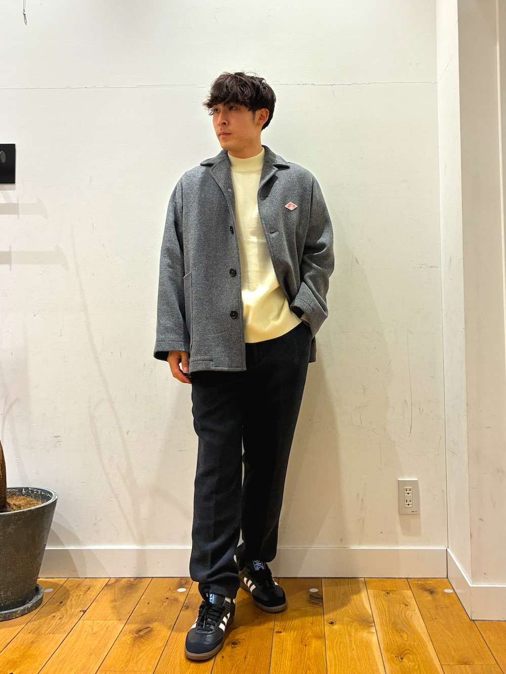 200日着ていても寄れたり毛玉になりにくい生地を使っているニットを着てシルエットが大きめなダントンのコートを着ています!ポケットが大きく、ミドルだけなのがお気に入りです!パンツは裏地が付いており、表面の肌触りがとても良いです!