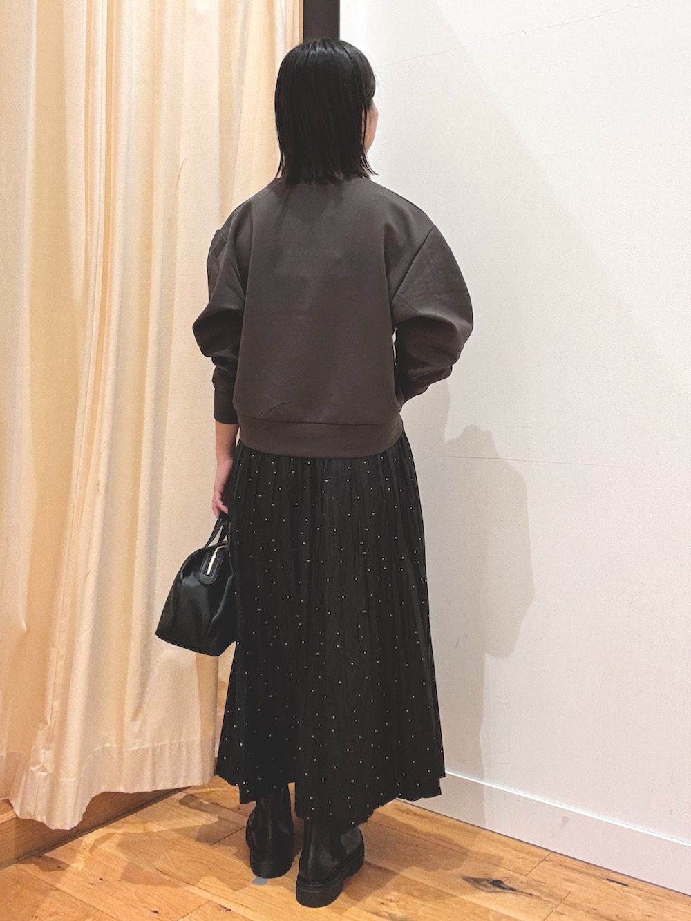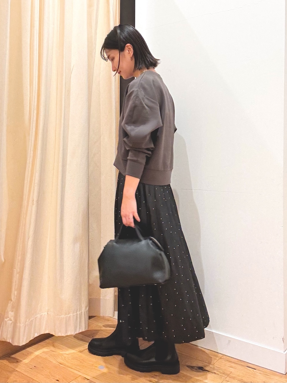 着丈も短めなのでスカートやワイドパンツとの相性も◎