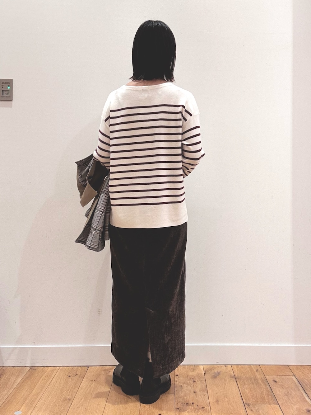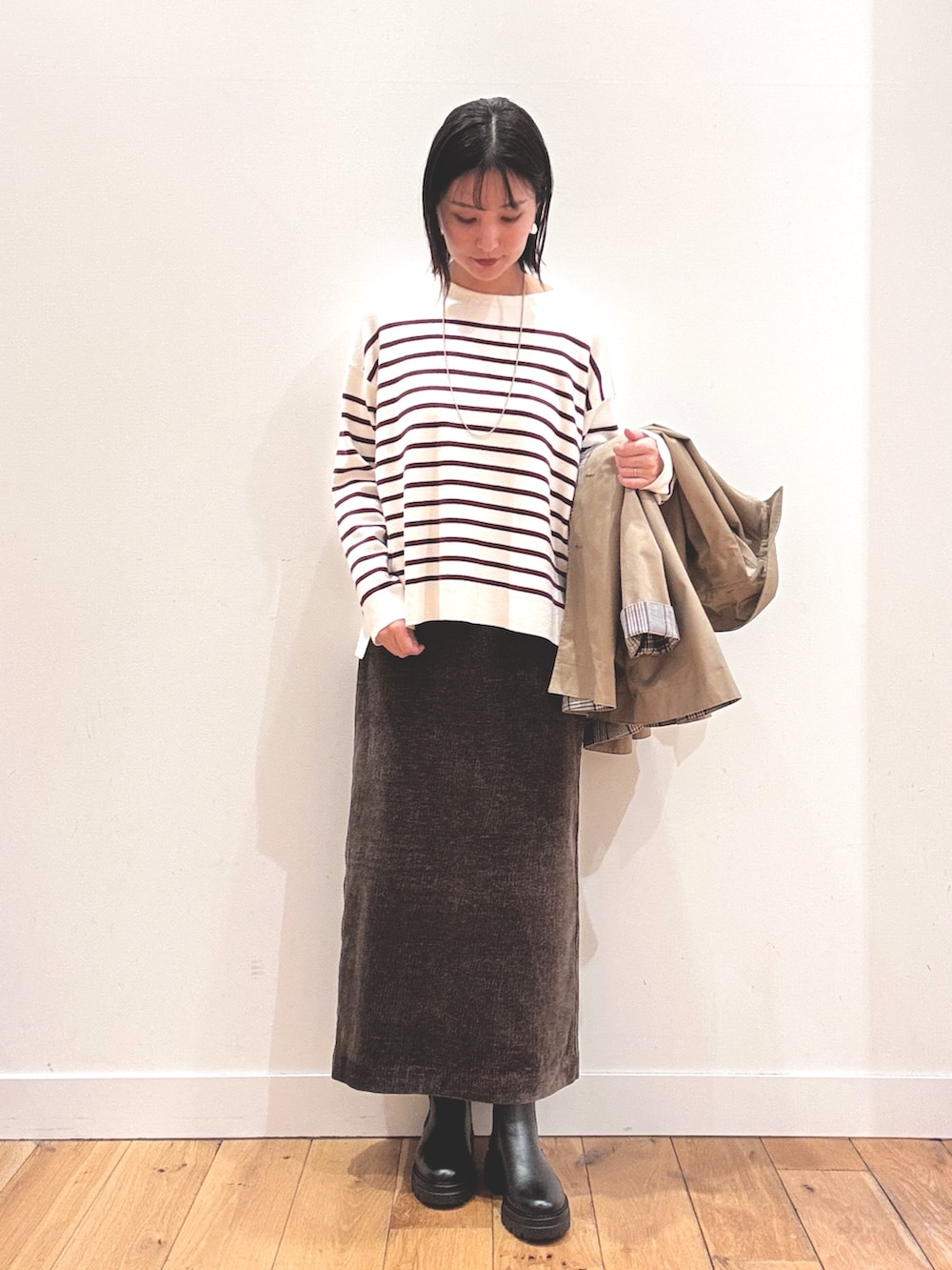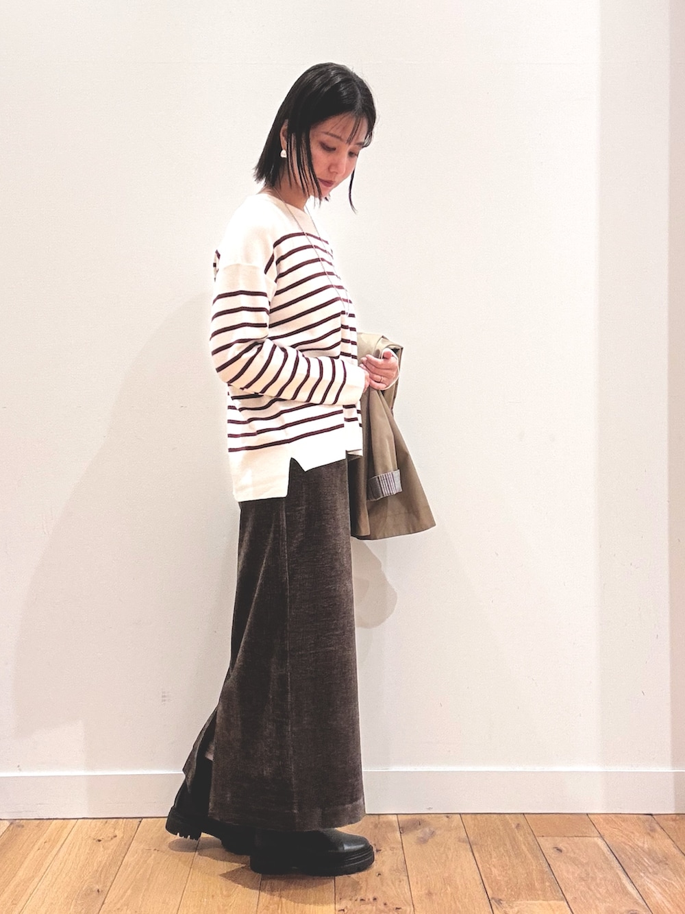 定番パネルボーダーのニットはゆったりしたシルエットで軽い着心地。