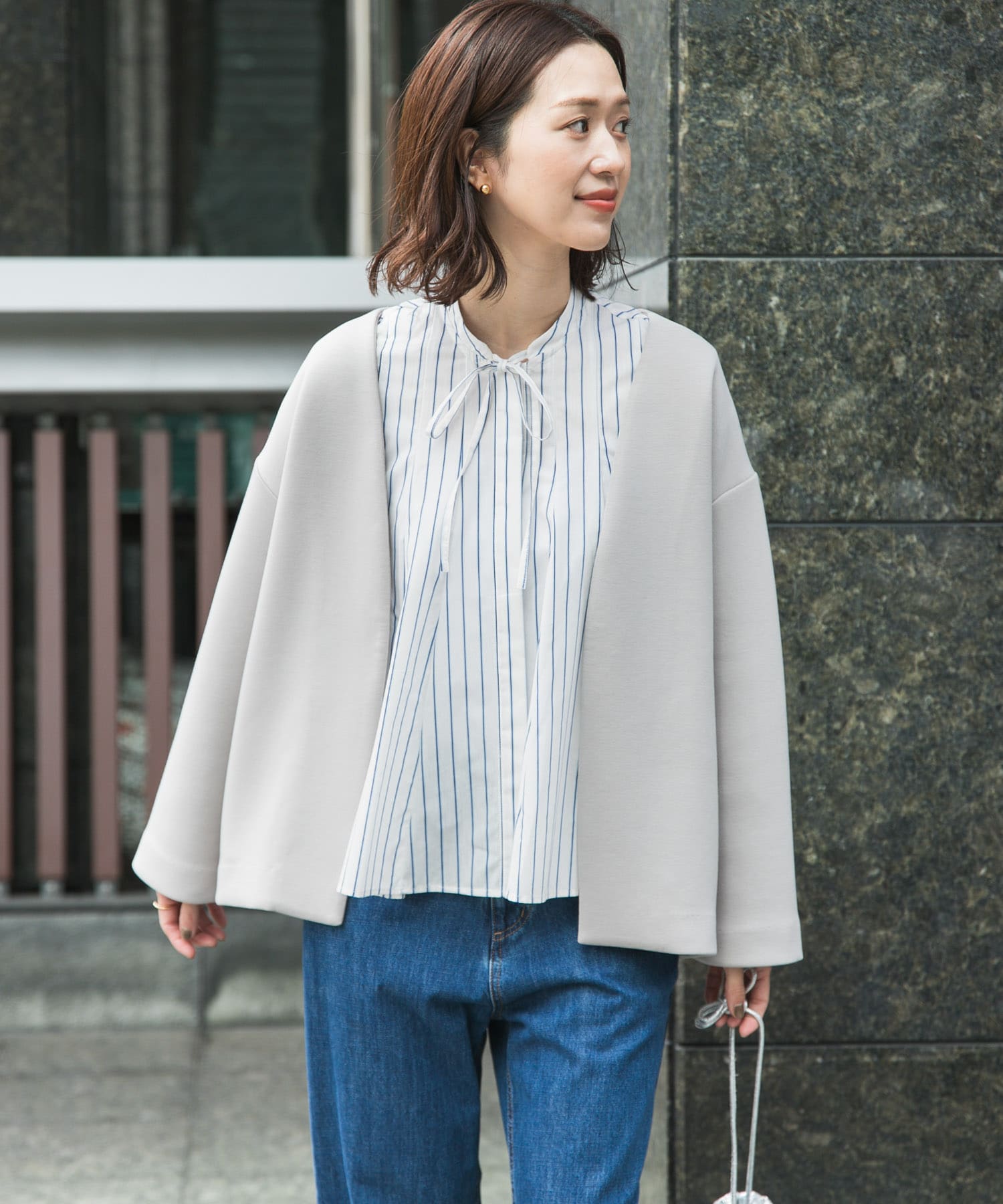着丈は少しだけ短めなのでワイドパンツやスカートで合わせると可愛いです。