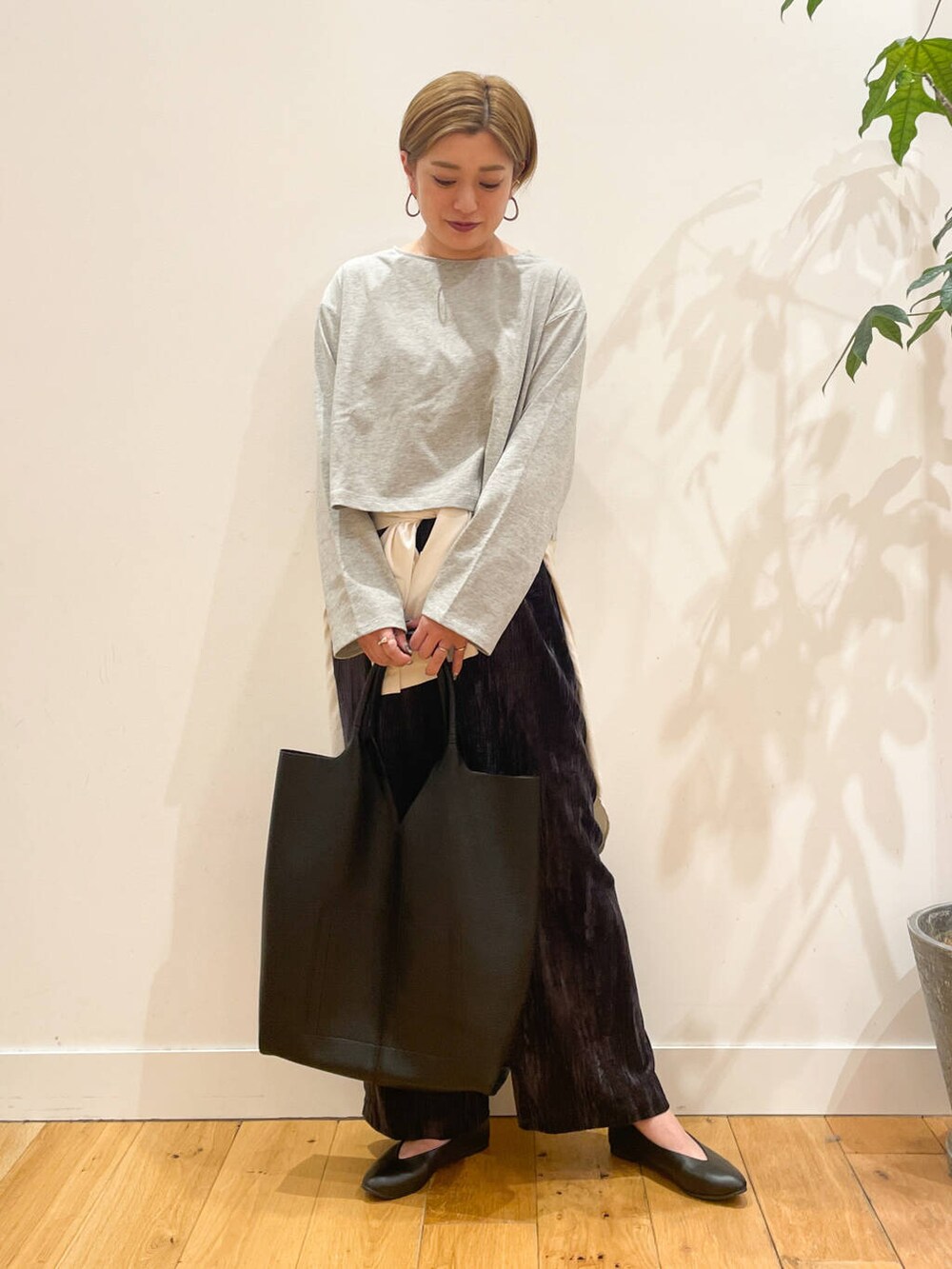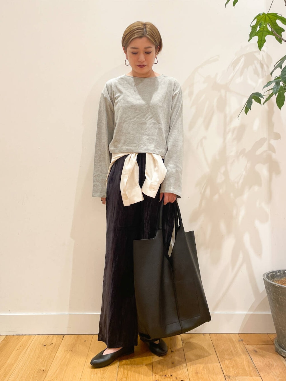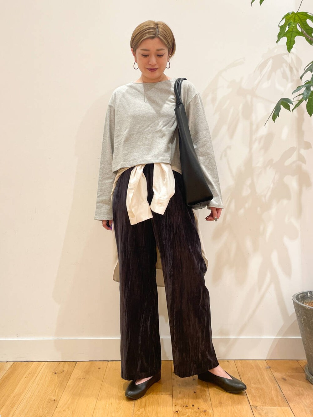 ゆるっとしたパンツとの相性がよくタックインなしでバランス良く着られるところが嬉しいです。