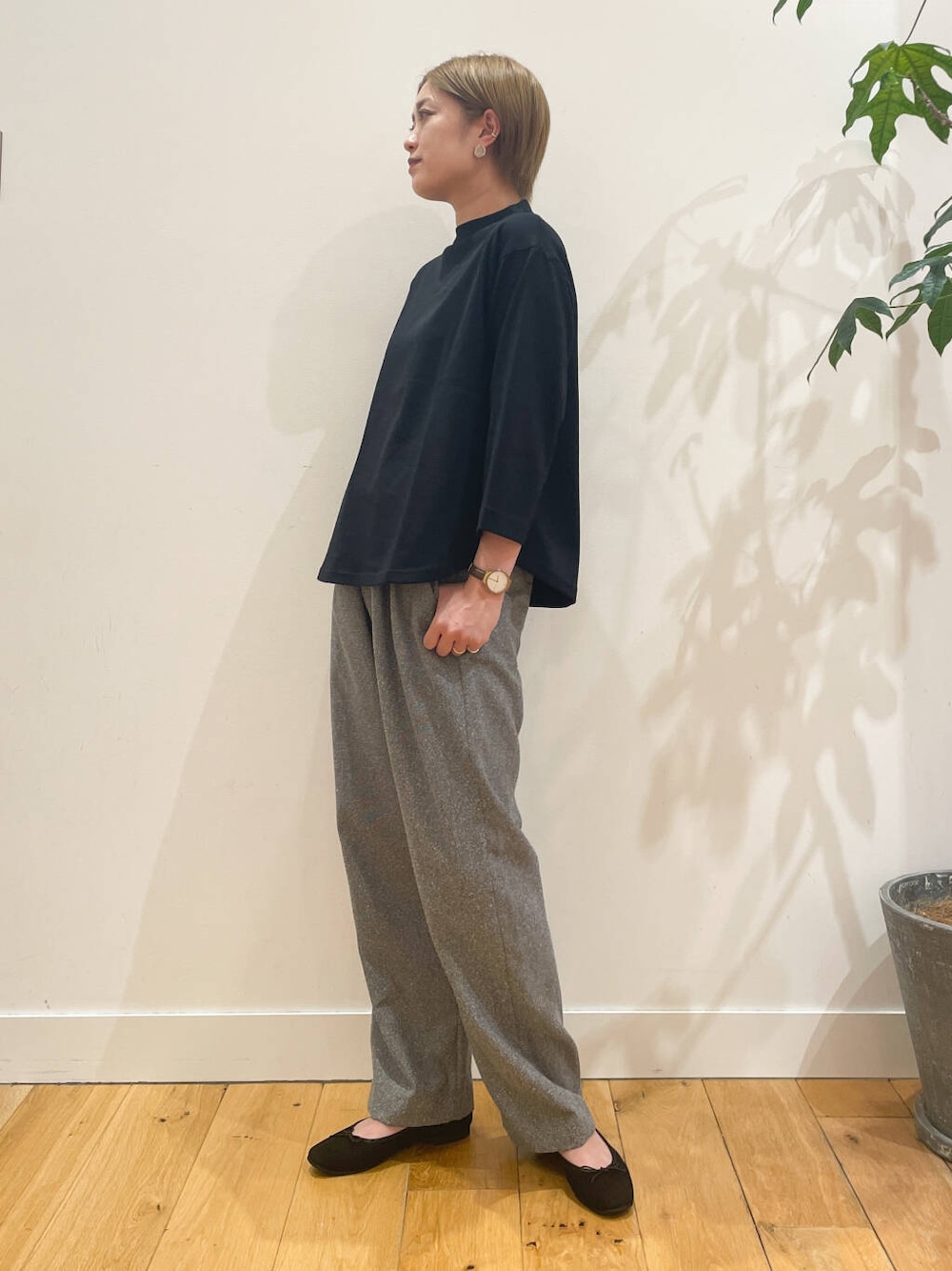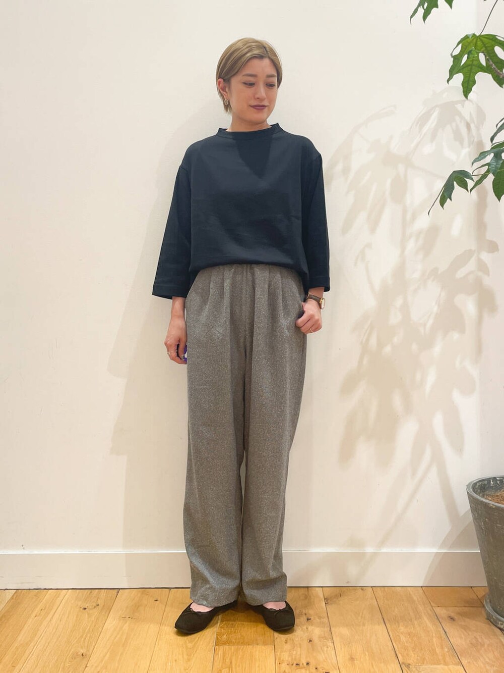 分厚すぎず柔らかい生地なのでまだ少し暑い季節からの着用ができ、シンプルなトップスを合わせるだけでこなれ感のでるアイテムです◎