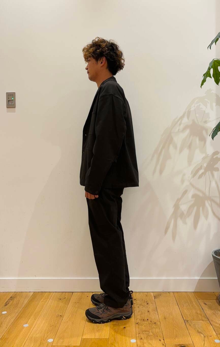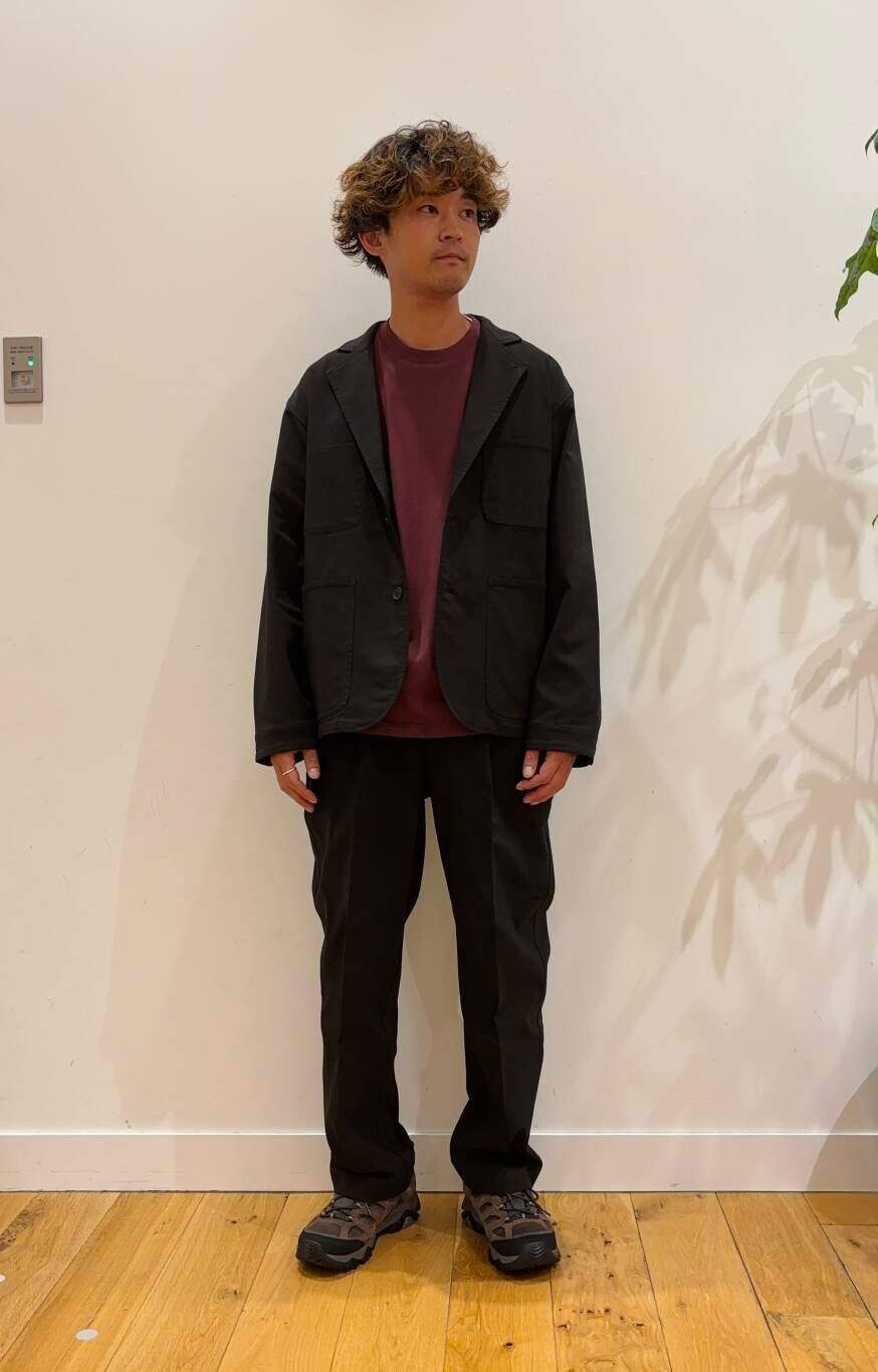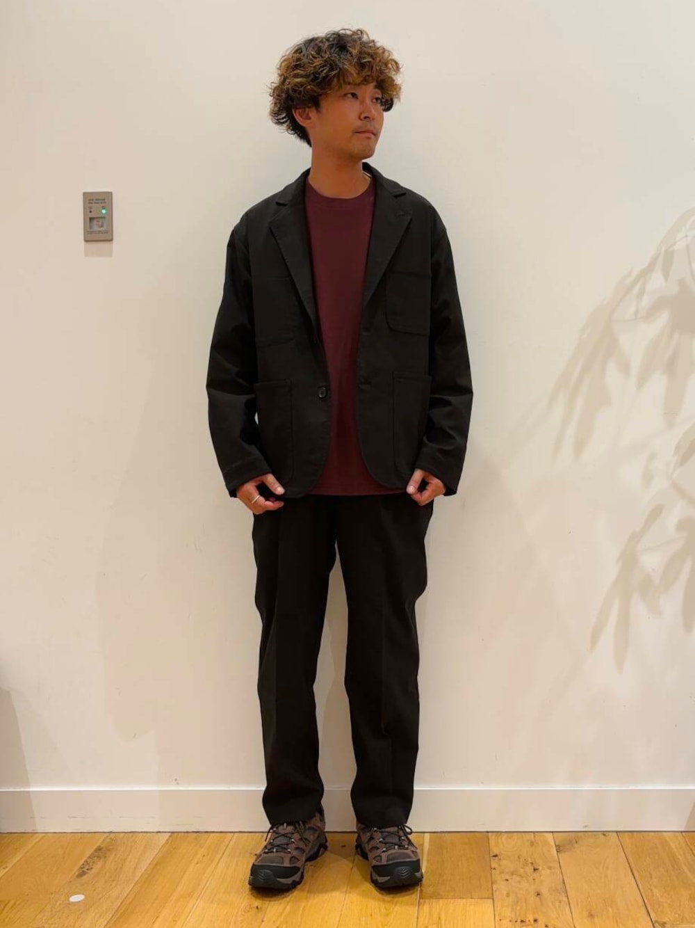 オーバーサイズのジャケットに合わせて、綺麗めで合わせてます。