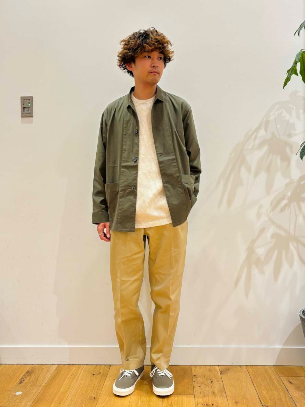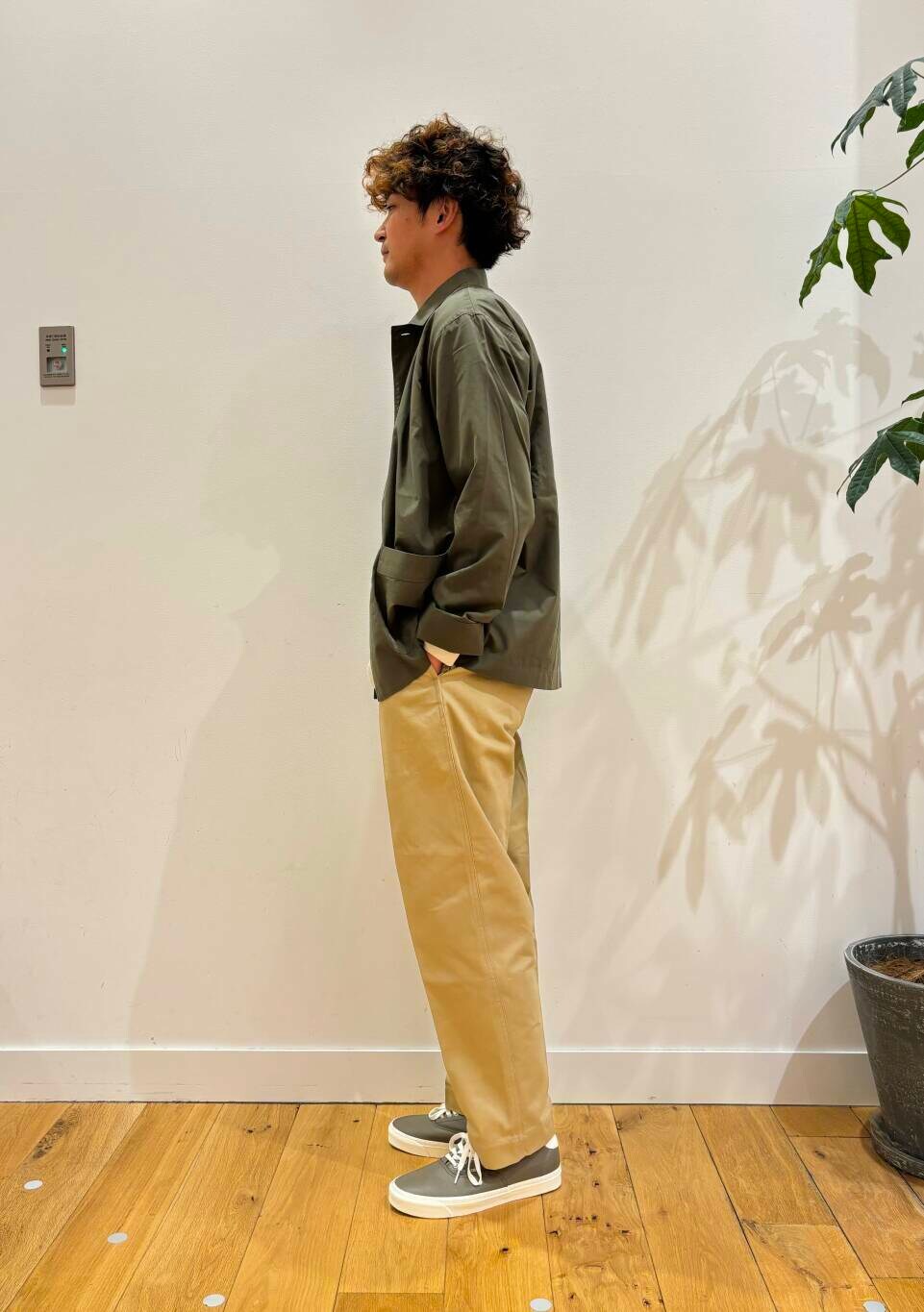 生地感も厚くなく、色合いも落ち着いたカラーなので色んなコーディネートを楽しめるアイテムです。