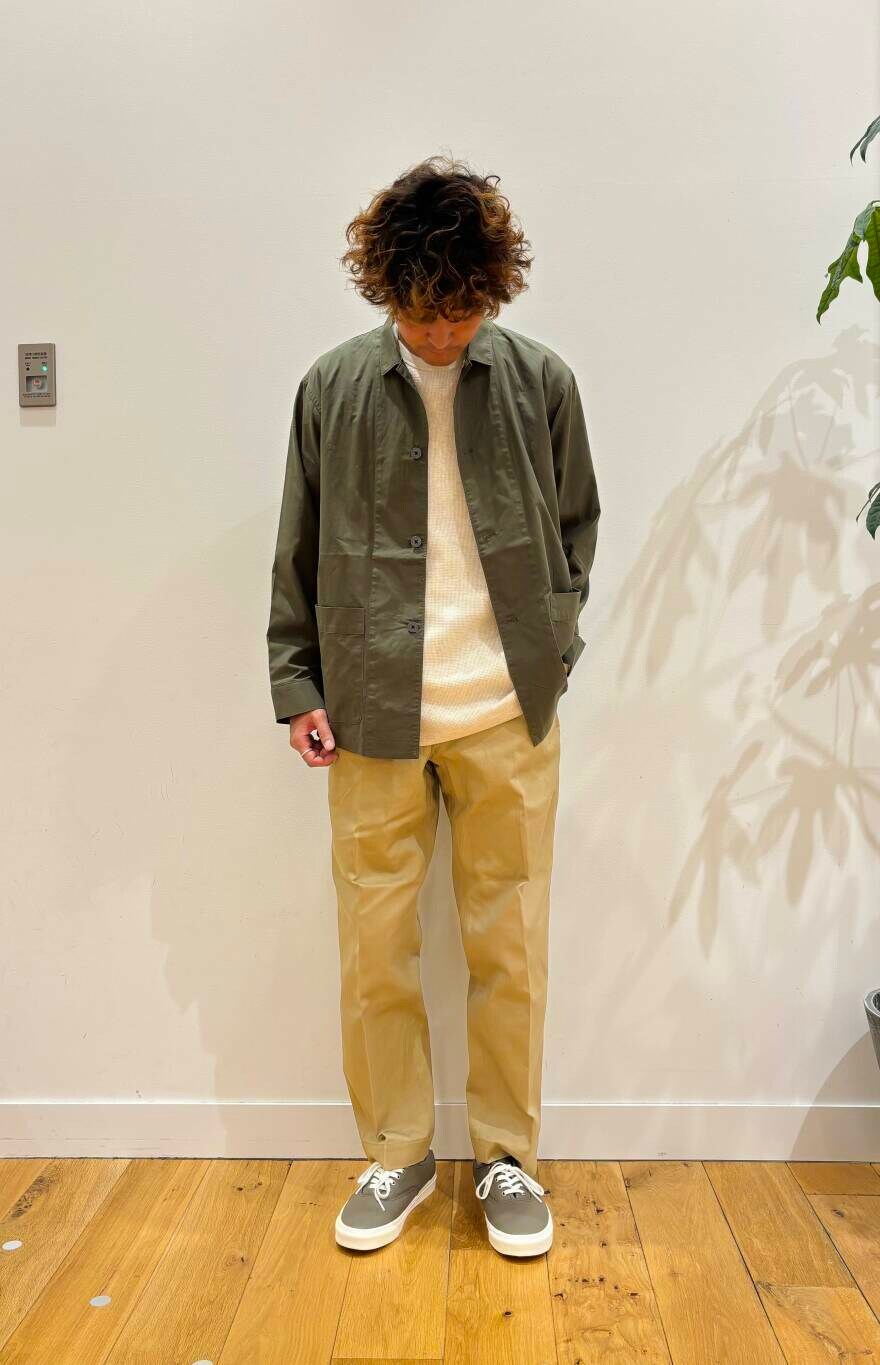 これからの時期にちょっとした羽織のアイテムでお探しの方にオススメのシャツでコーディネート組んでみました。