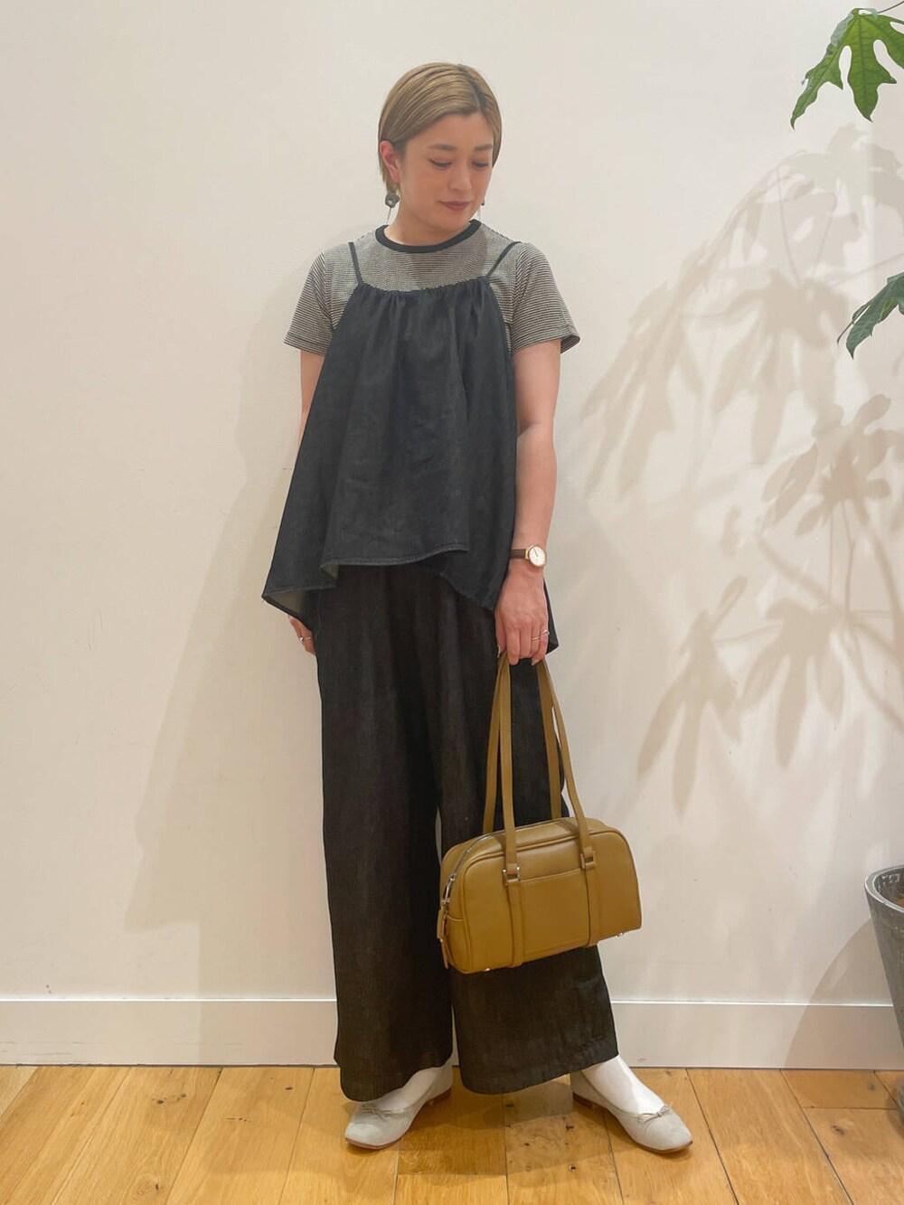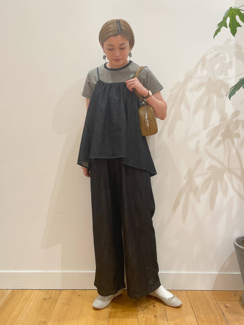 サイズ感はゆったりしていてトップスがフレアなシルエットなのでお腹周りもしっかりカバーできます。