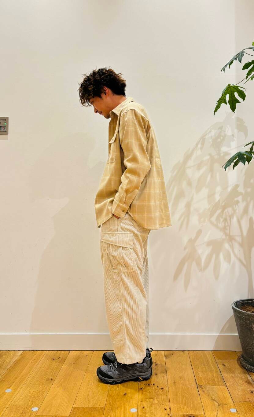 パンツもSTONEMASTER×ROKX×DOORSの別注パンツです。コーデュロイでも重たさがないので長時間履くのにはオススメ。