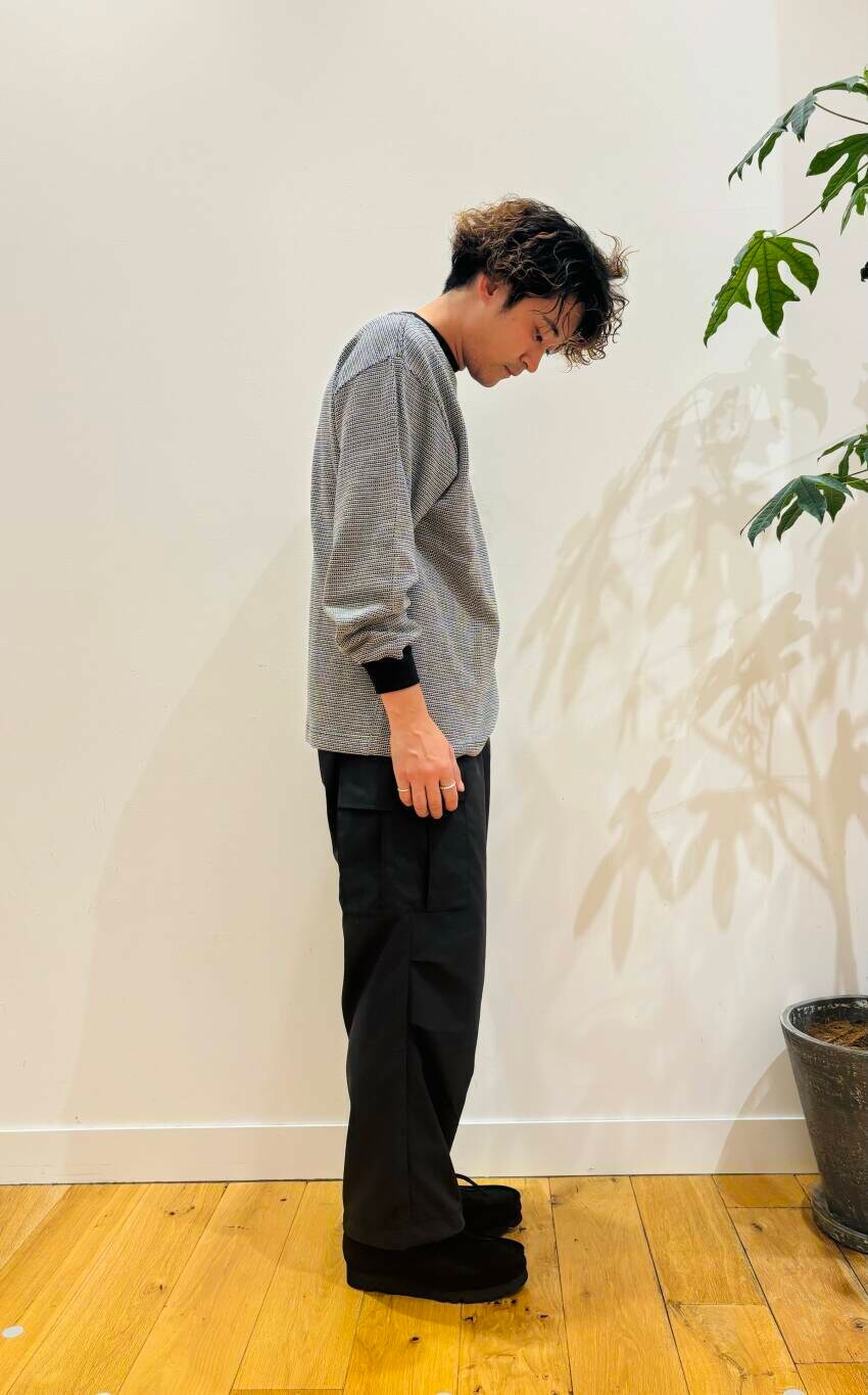これからの寒くなった時期にぴったりの少し厚手のアイテムでコーディネートを組んでみました。