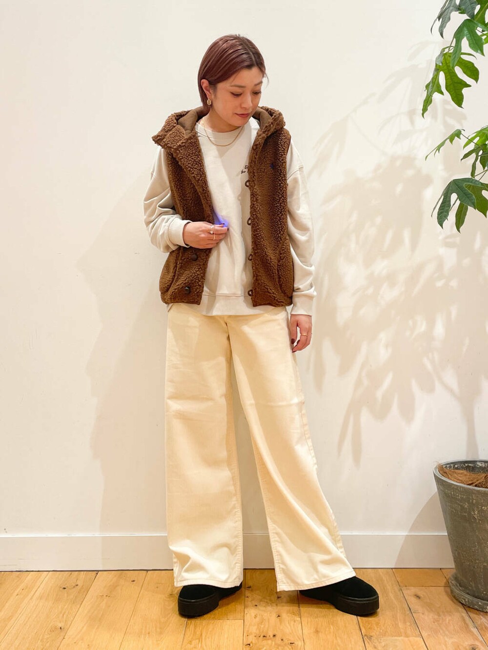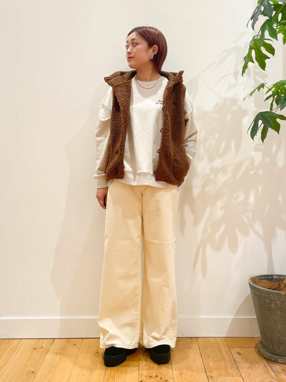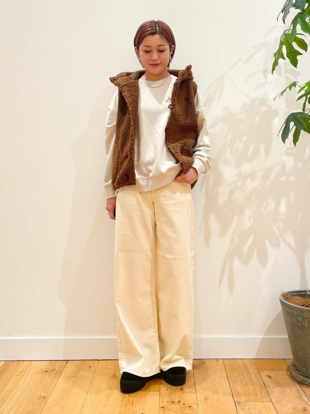 カジュアルすぎない細畝のデザインで程よいワイドシルエットがキレイめ合わせにも使いやすいです。