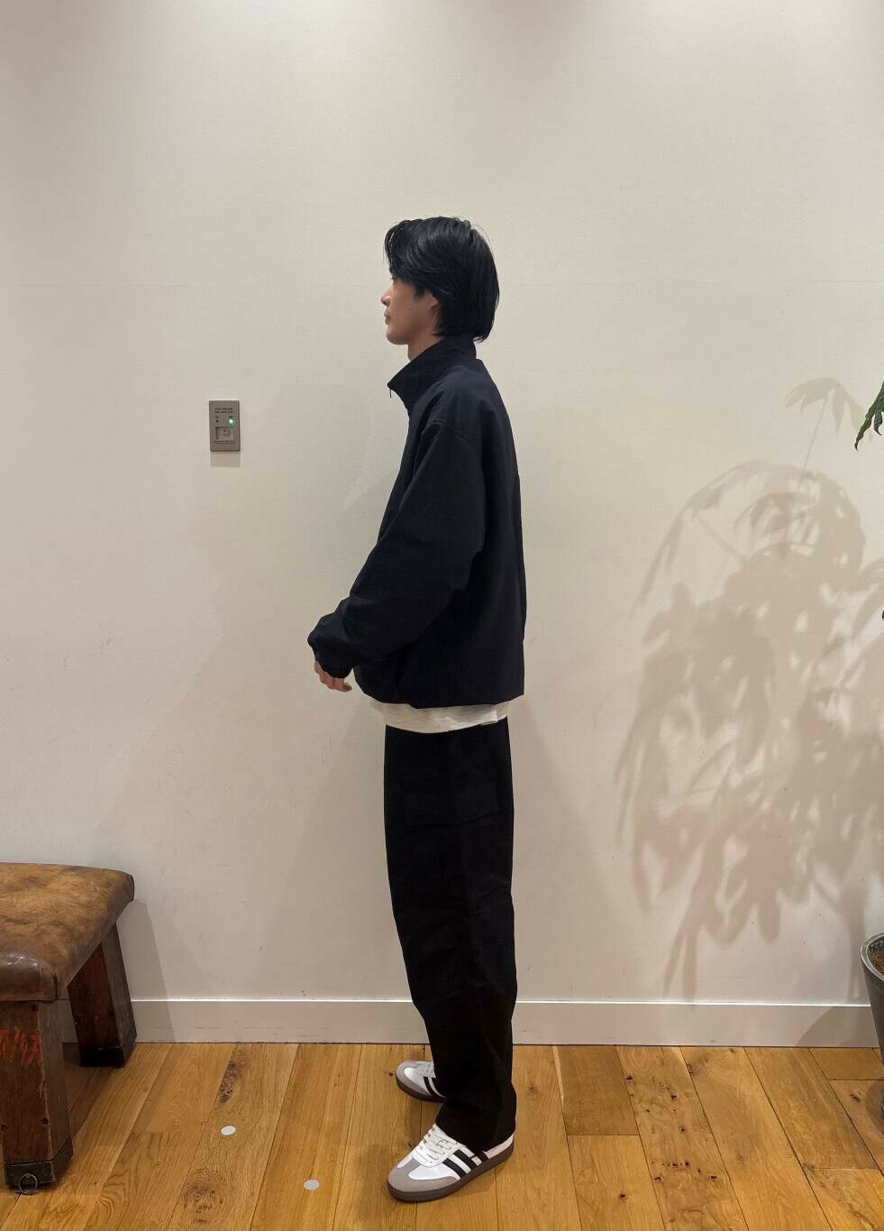 同素材のセットアップもいいですがカーゴパンツなど合わせてもかっこいいです。