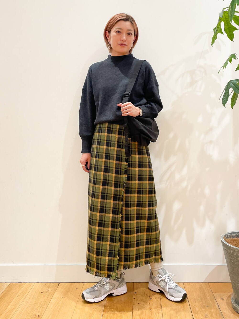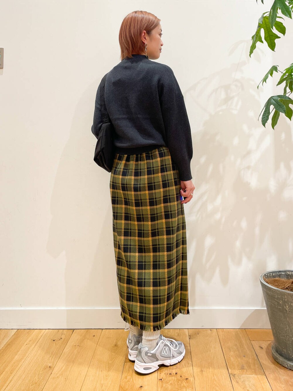 チェック柄が秋冬らしく2色ともとても可愛いラップデザイン風のスカート。