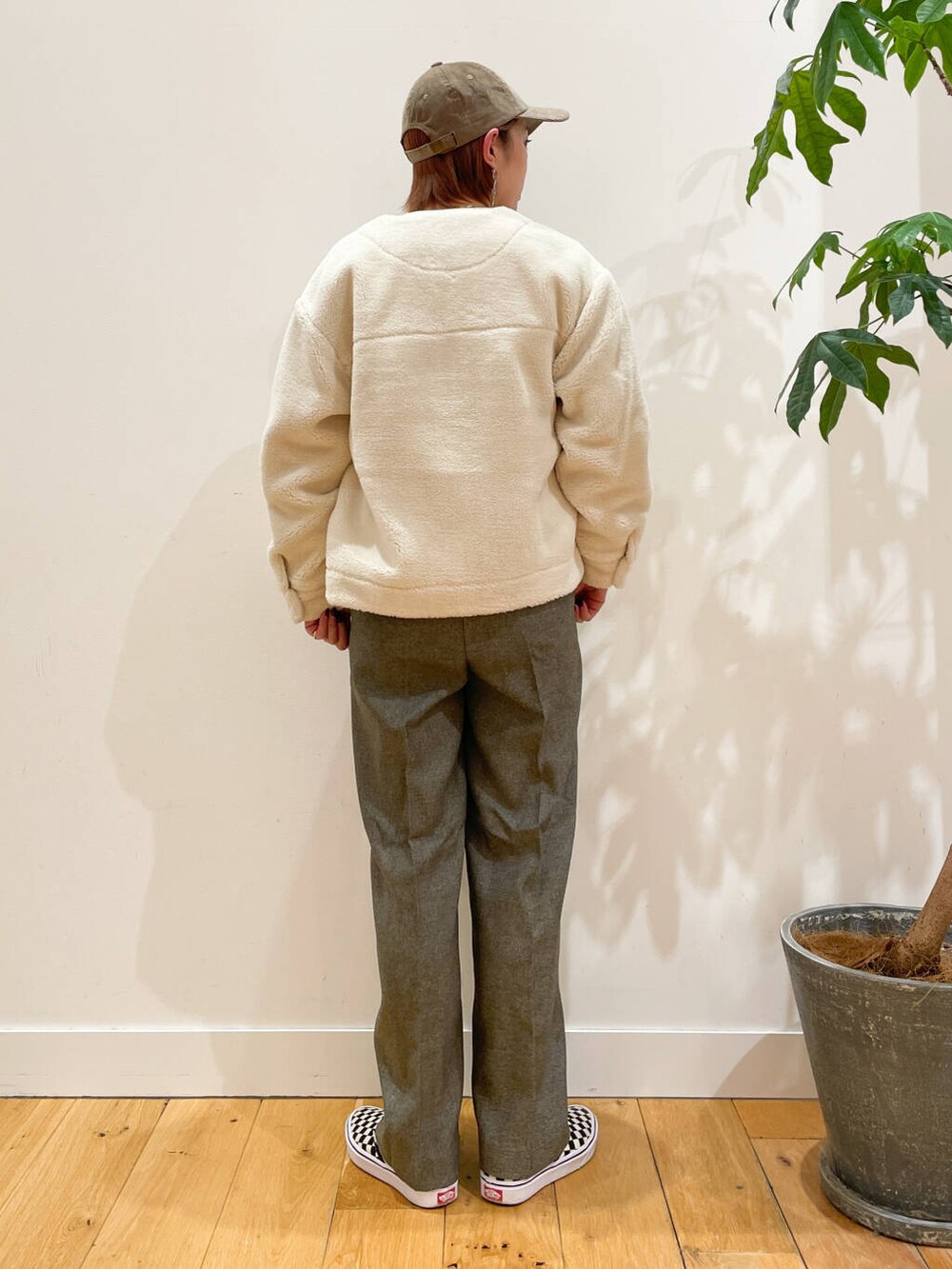 ノーカラーでボリュームが出過ぎずスッキリと着られるアイテムです!