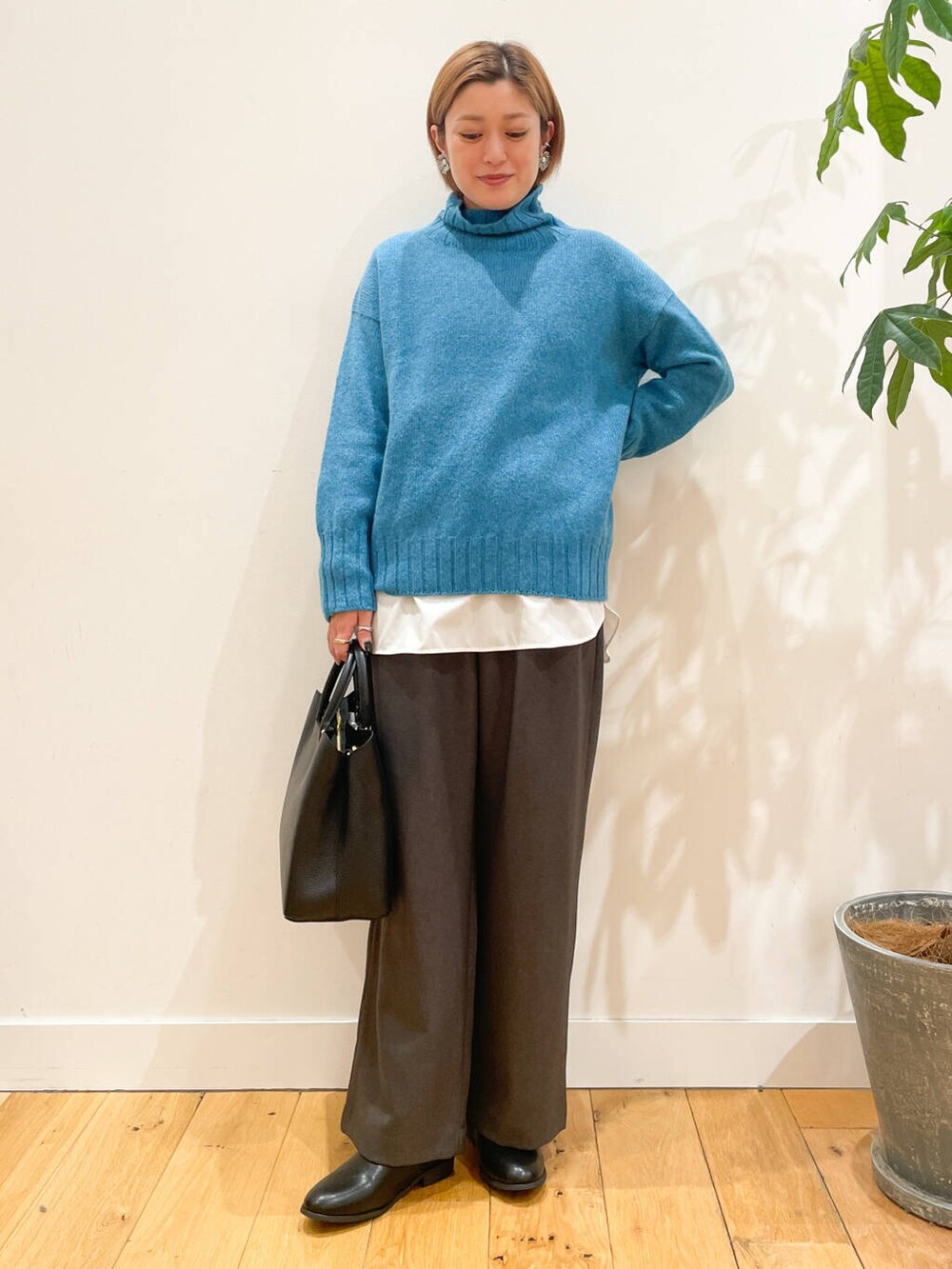 柔らかく肌あたりの良いウール素材で一枚で着用しても温かいです!!