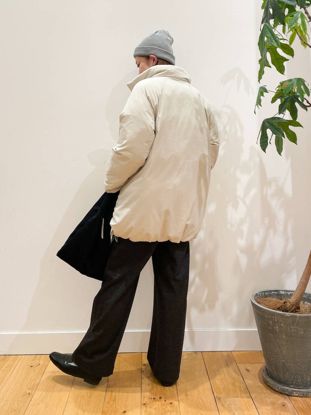ボリュームのある中綿ブルゾン。