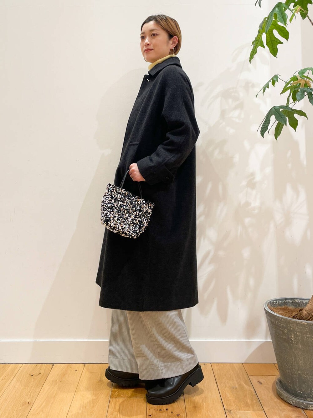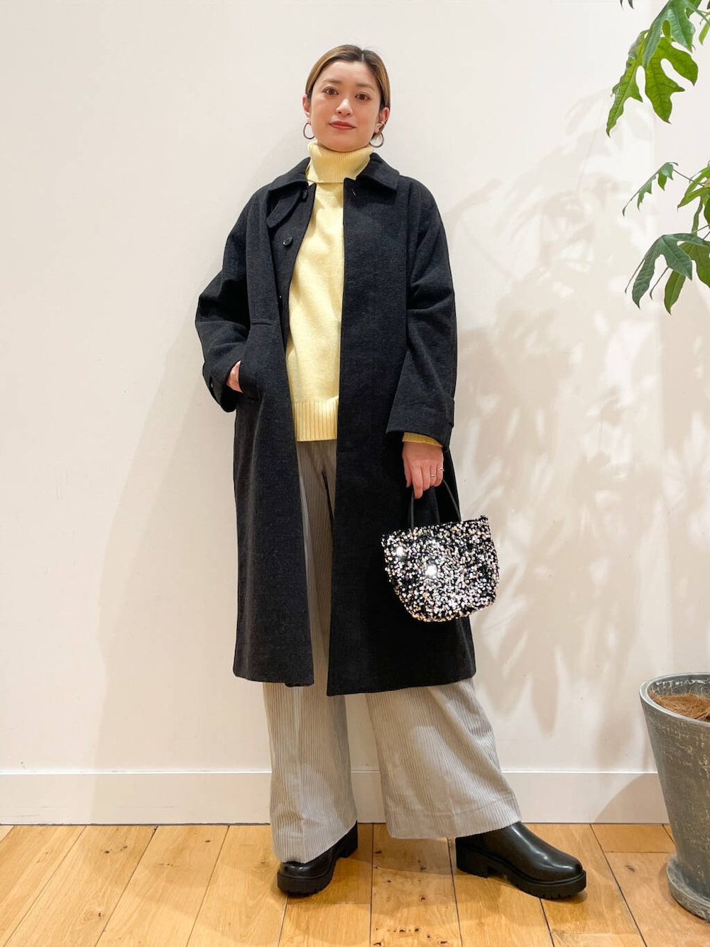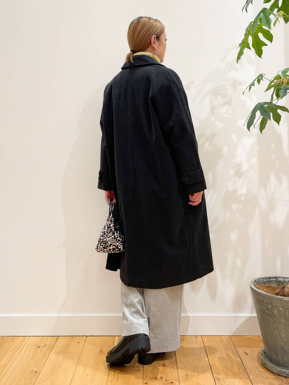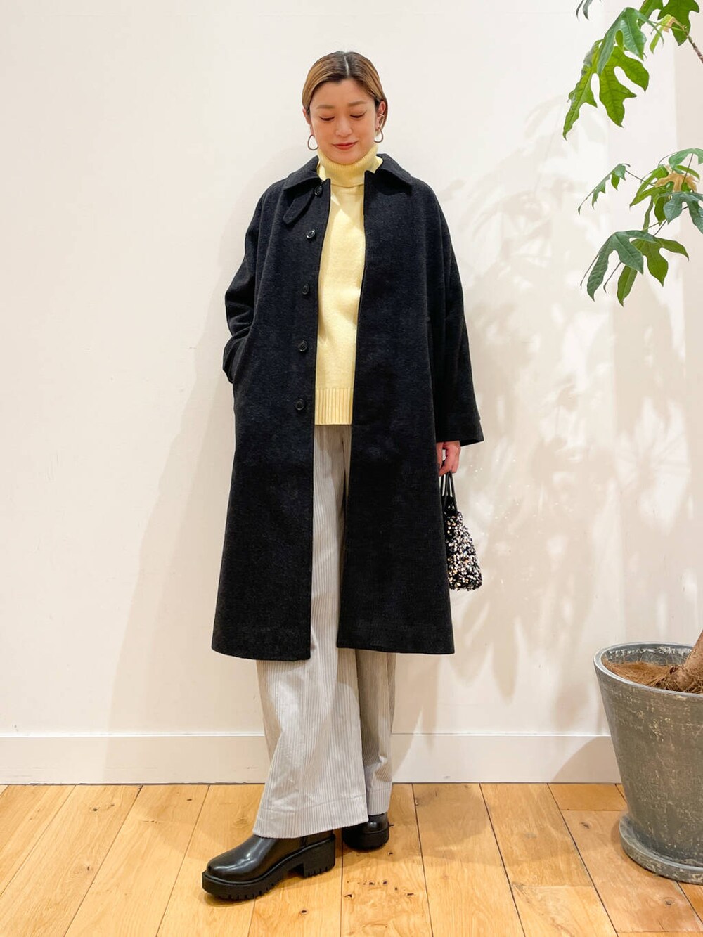 ロング丈ですが重量はとても軽く、ラグラン袖で肩周りもゆったりしているのでニットの上からでも羽織りやすいです◎
