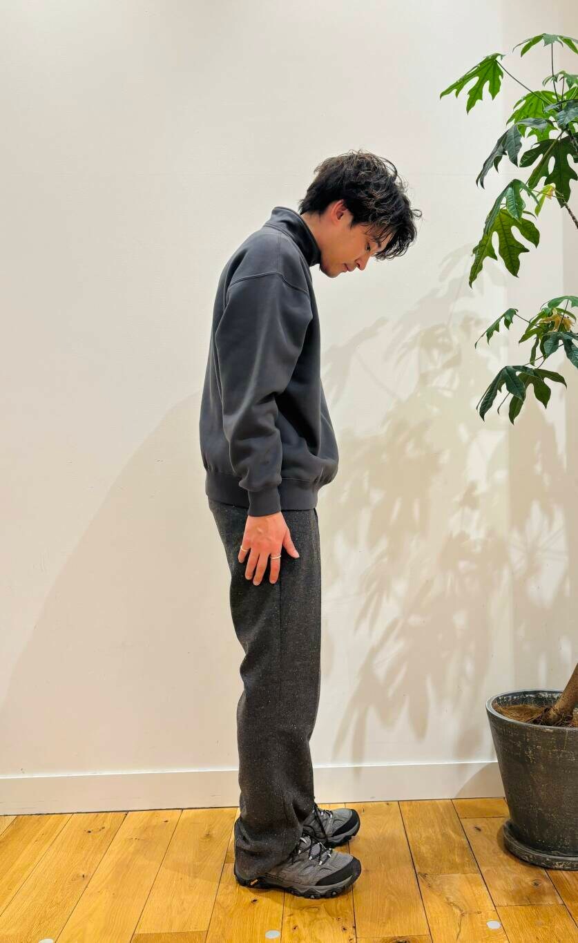 軽さや大きすぎないシルエットは細身のパンツとの相性が抜群。