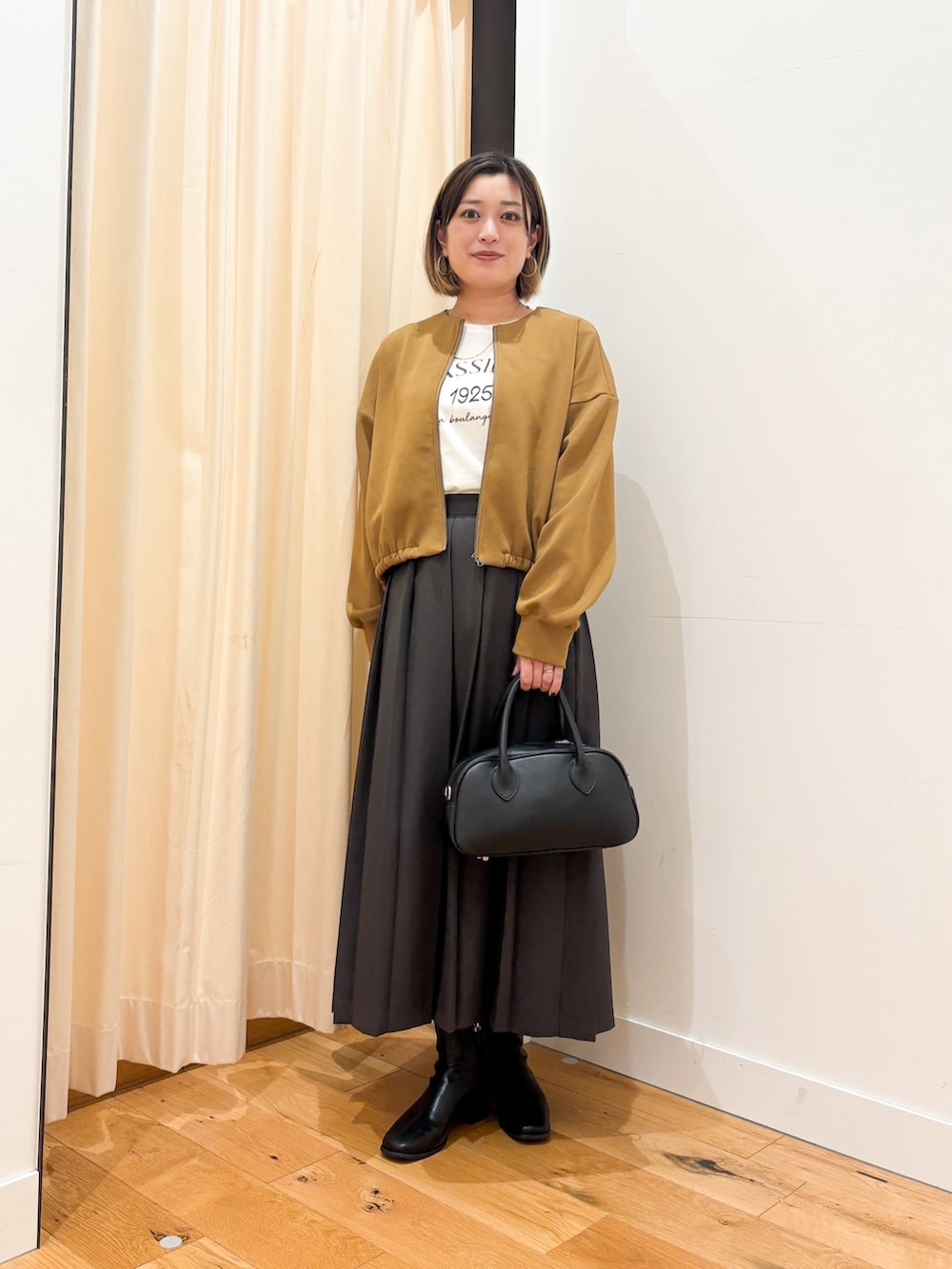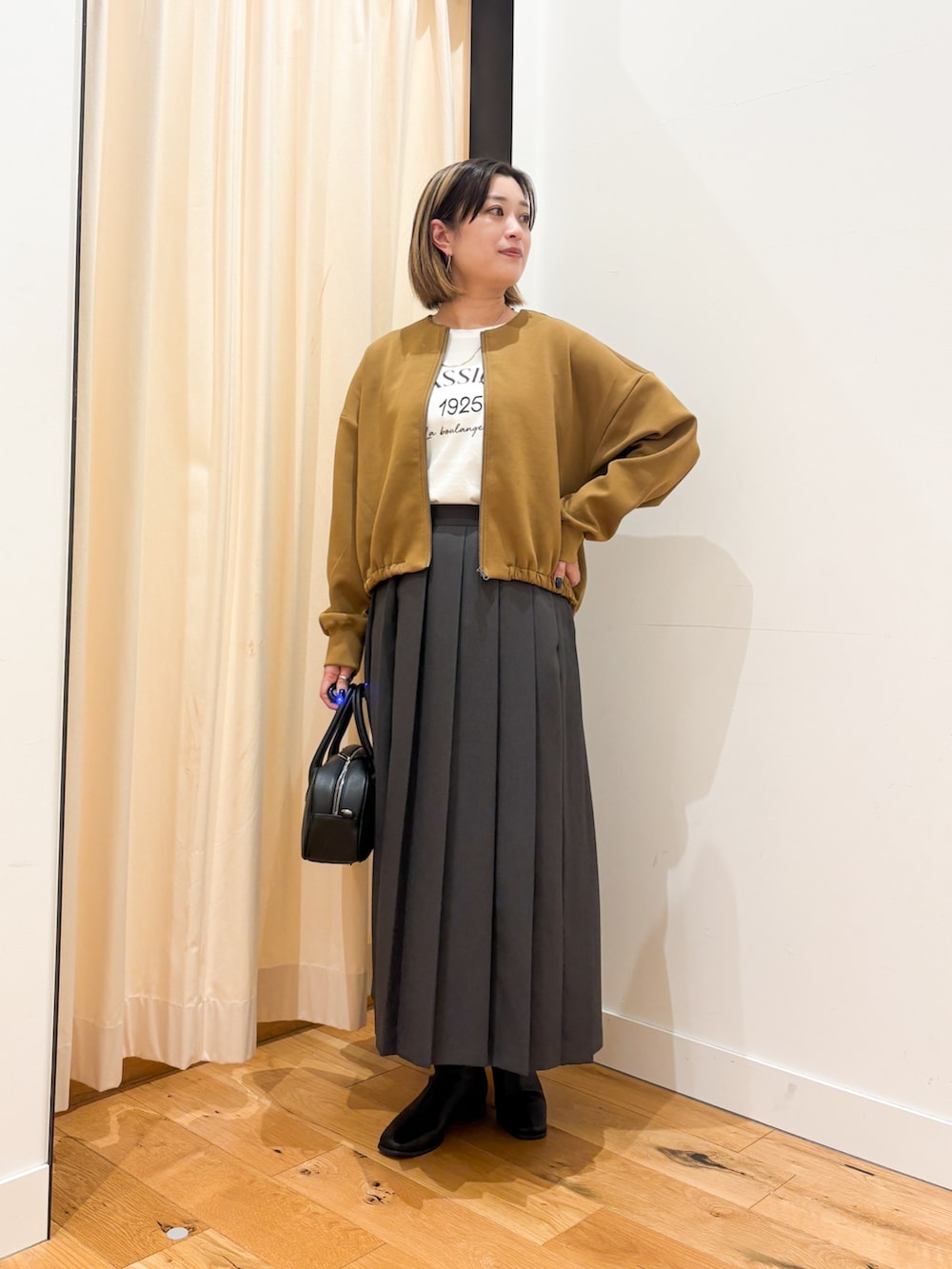 着丈はすっきりめなので長丈やスカートとの合わせがとっても可愛いです◎