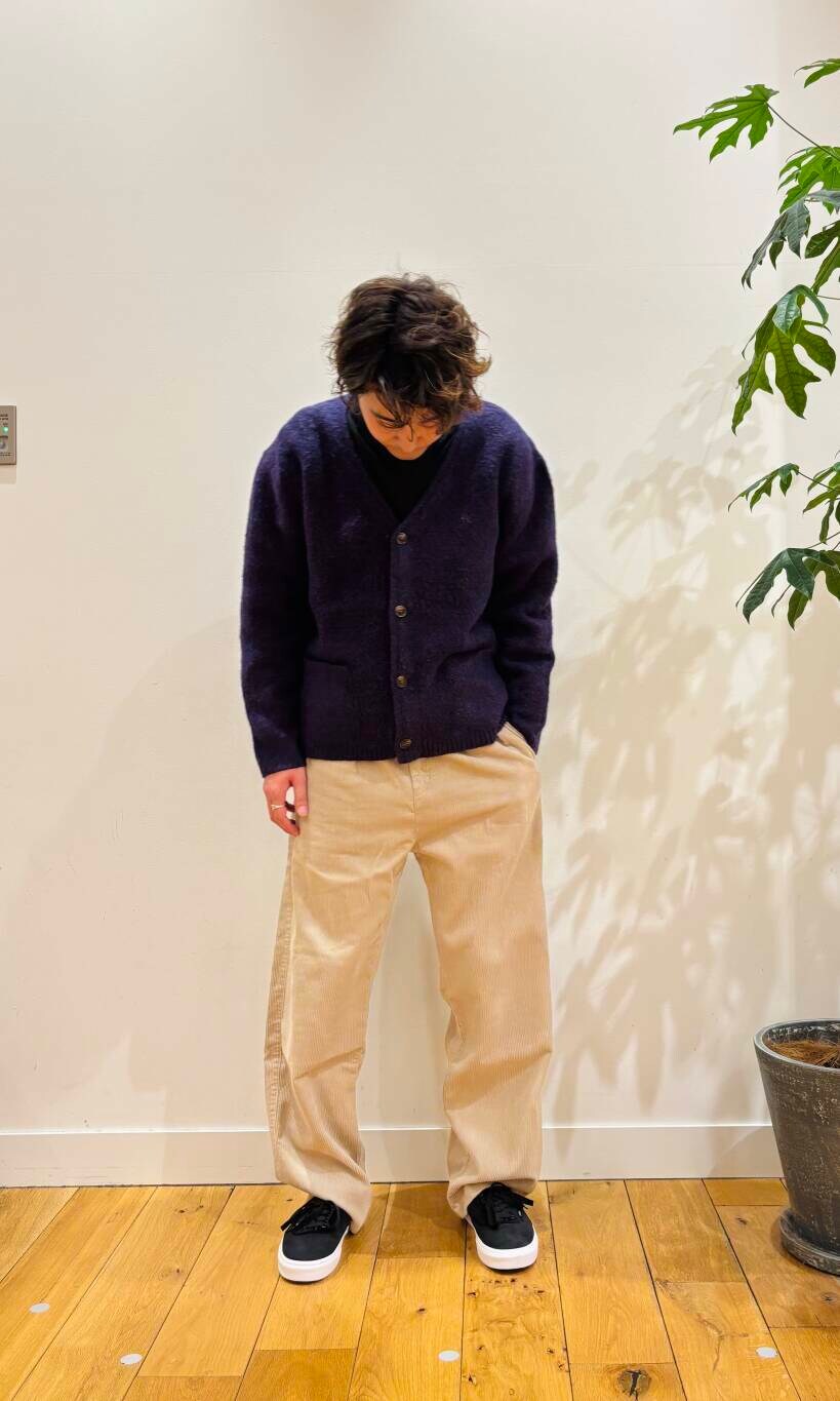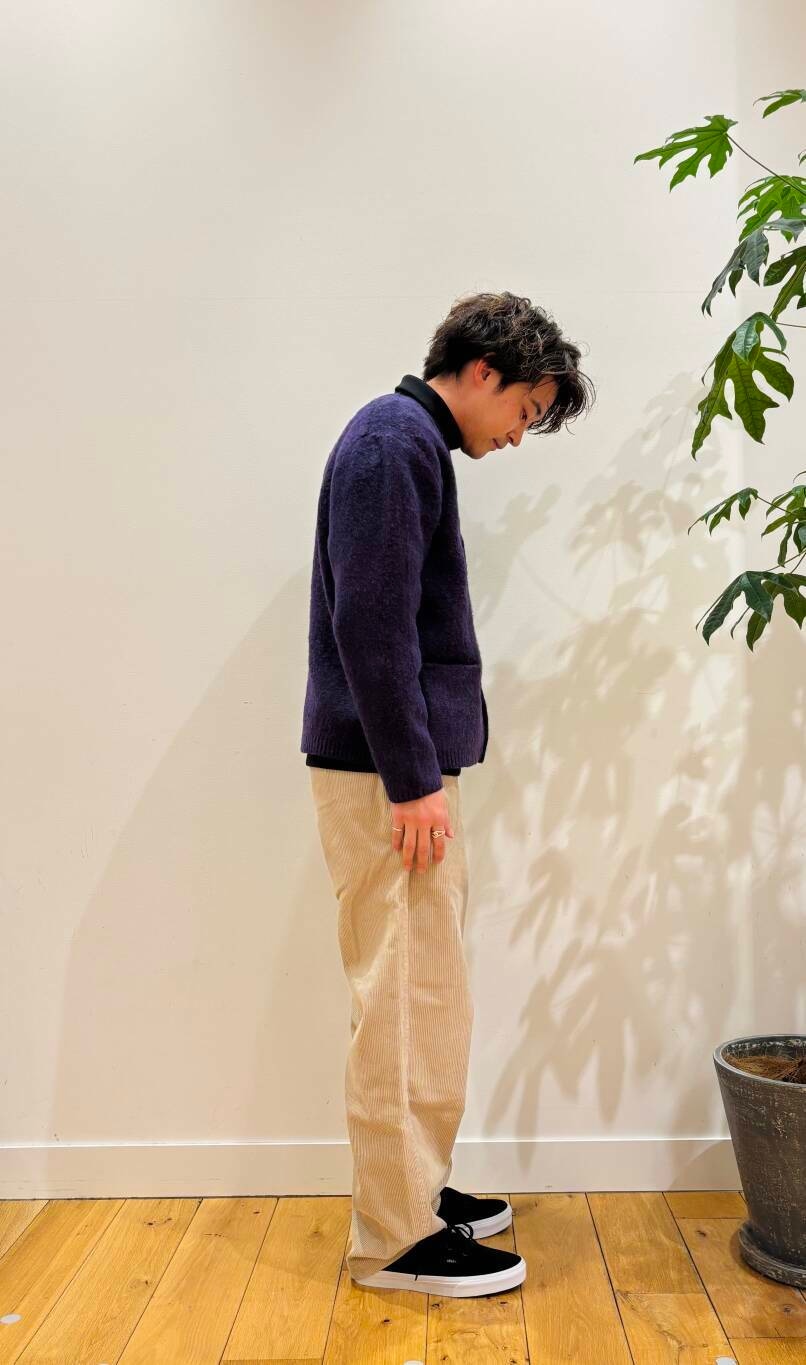 厚手のアイテムで珍しいカラーなので少しキレイ目でコーディネートで組んでみました。