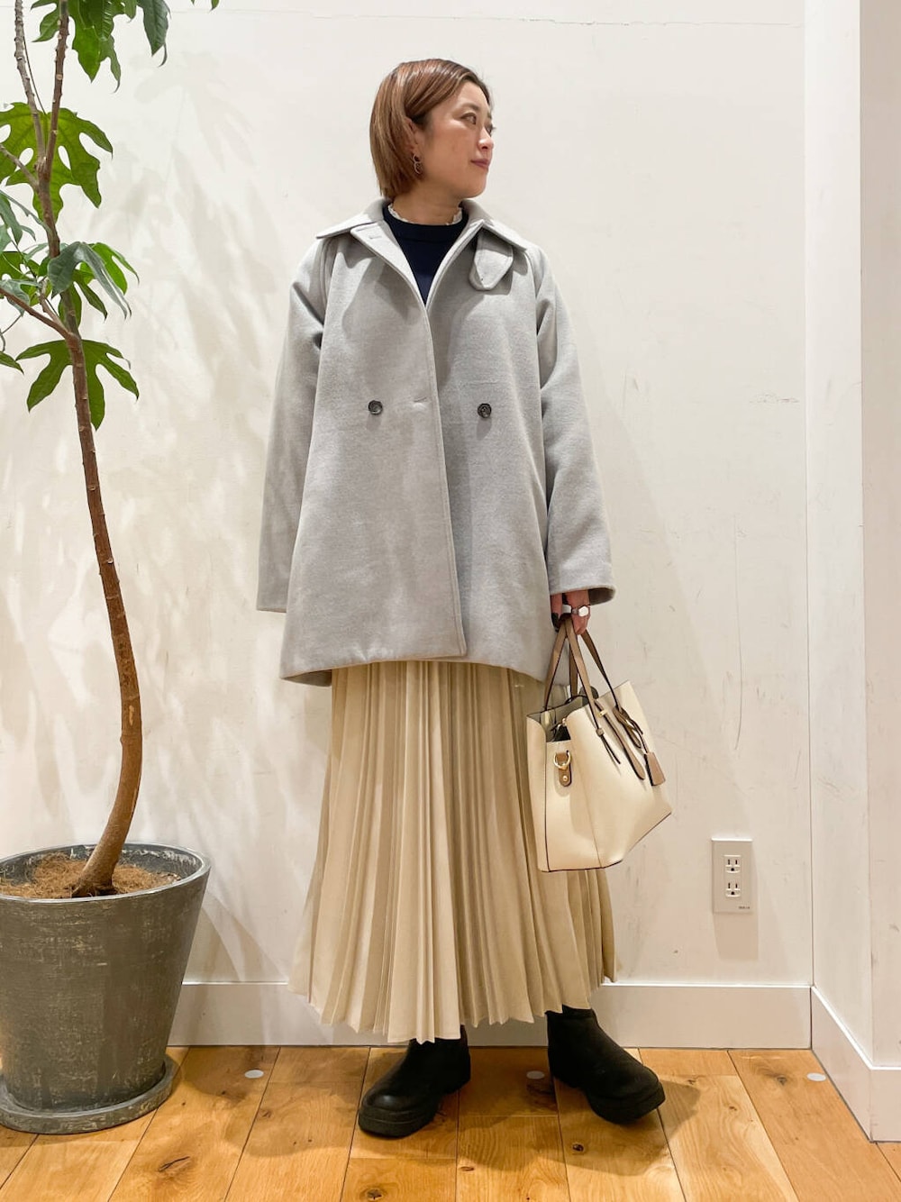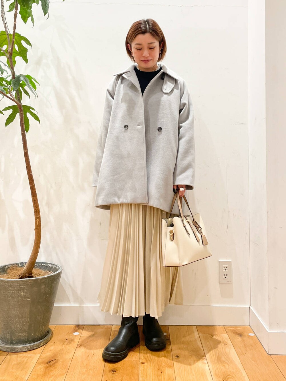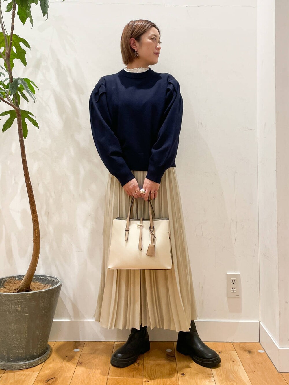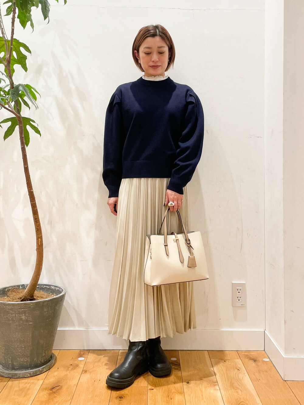 プリーツスカートとの合わせもバランスが良くて可愛いです◎