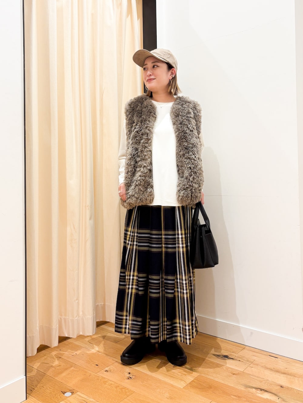 今回は秋冬のイメージでファーベストを合わせてSLらしいカジュアルなスタイリングに。