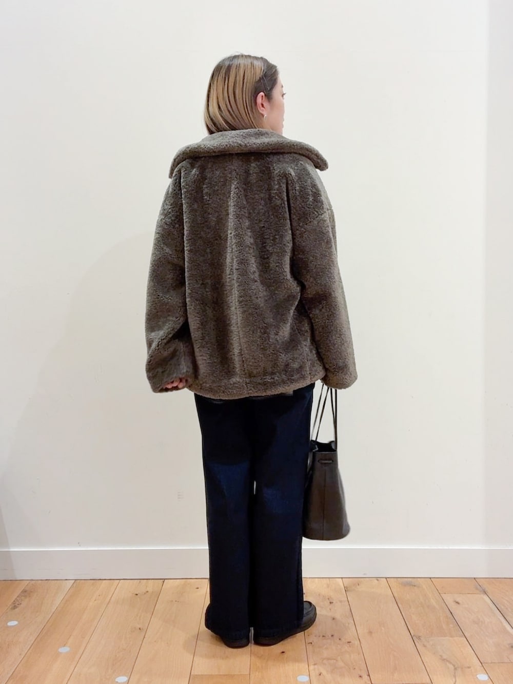 オンオフどちらにも合わせやすいデザインのボアコート。
