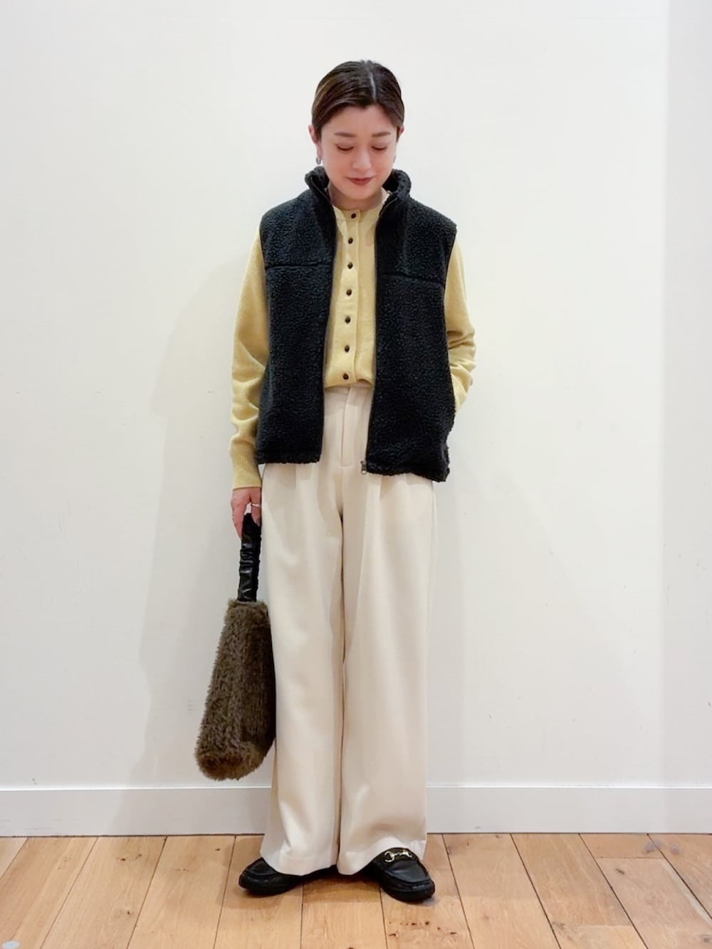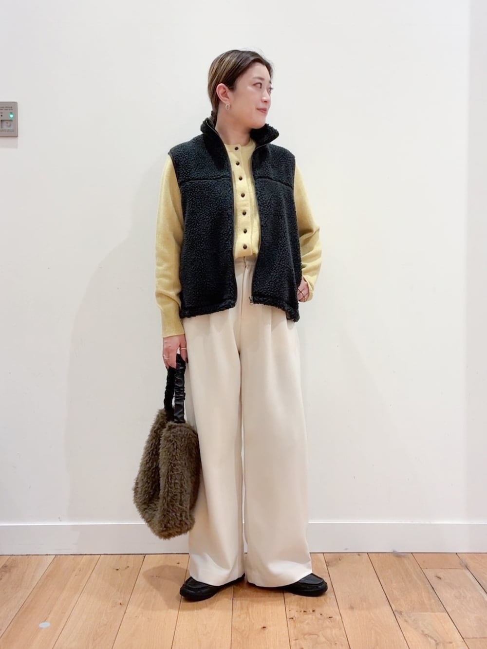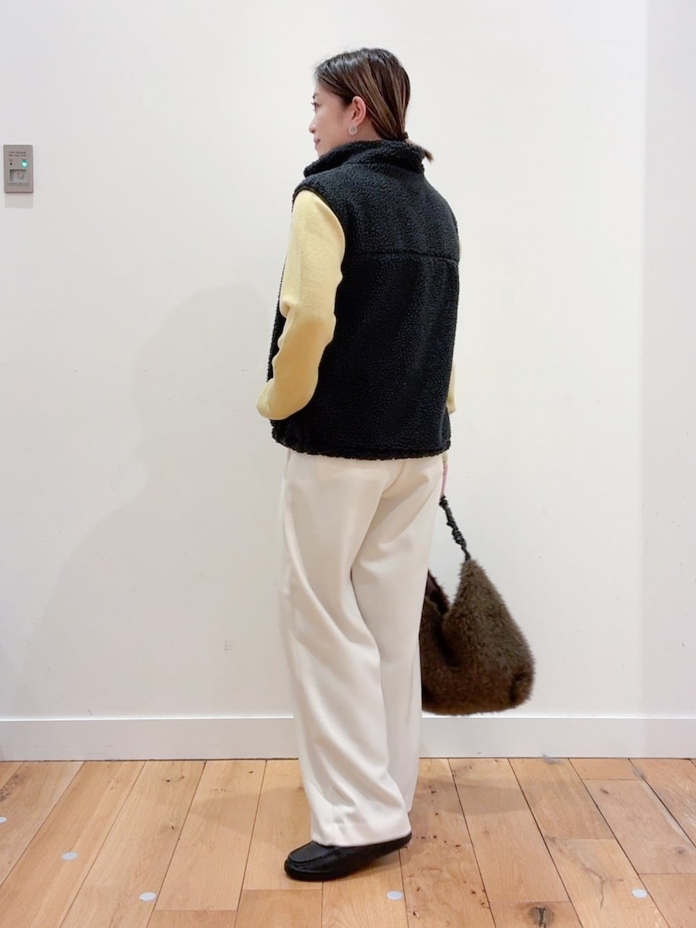 アームホールは広めなので袖にボリュームのあるトップスも重ねて着用できます。