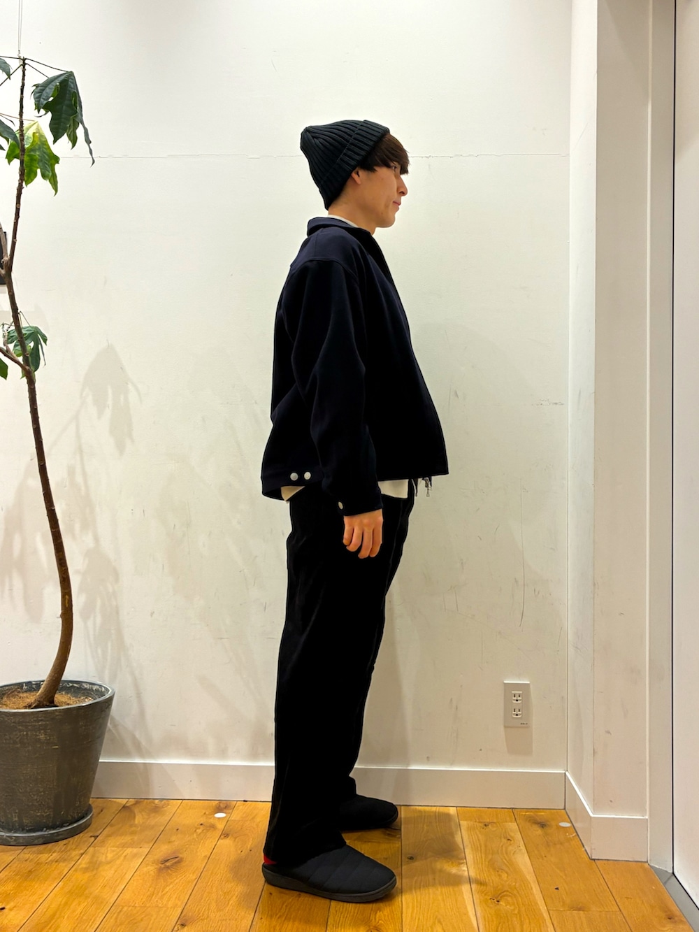 ポケットが特徴的なジャケットにレギュラーカラーのシャツを着ています!下はコーデュロイパンツでSUBUの靴とニット帽で冬を暖かく過ごすことが出来ます!