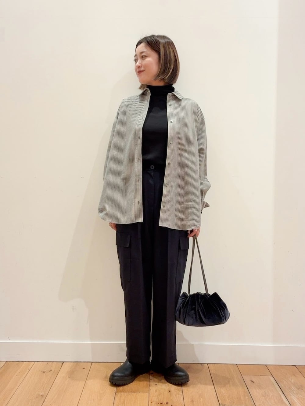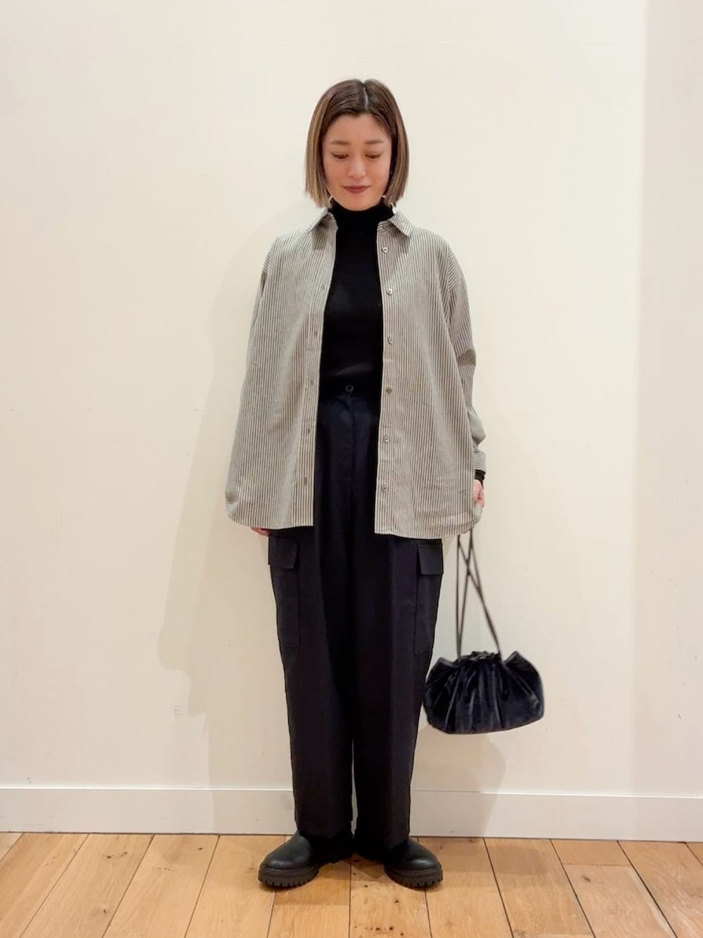 起毛感のあるシャツは着丈も長めでニットとの重ね着にもオススメです。