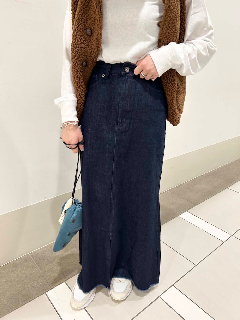 デニムスカート合わせはカジュアルですが女性らしさも出せるのでおすすめ!