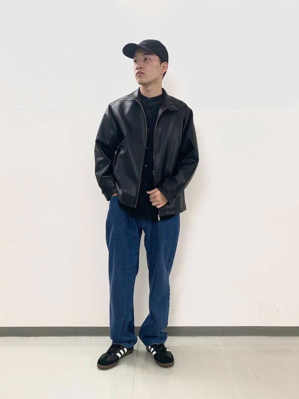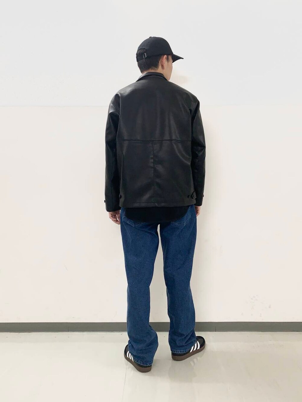 ジャケットはフェイクレザーを使用したトレンド感抜群のハリントンジャケットです。