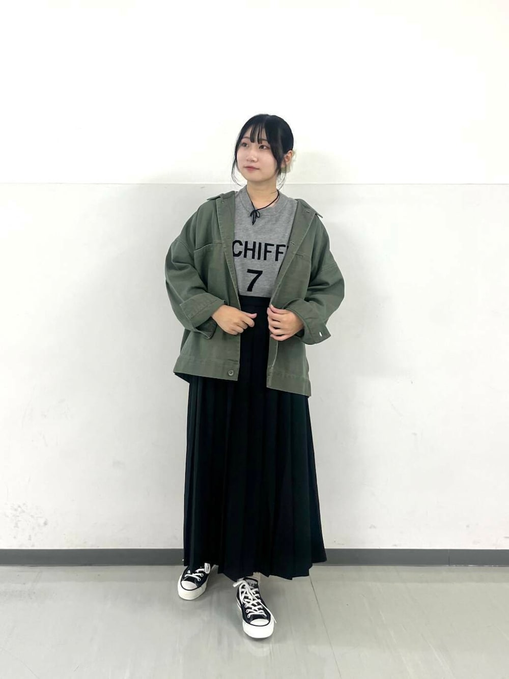 スカートも甘くなりすぎないプリーツスカートになるのでカジュアルスタイルにもってこいの商品になっております!