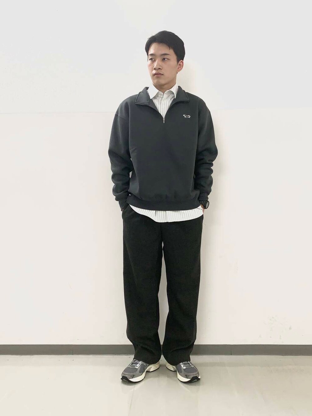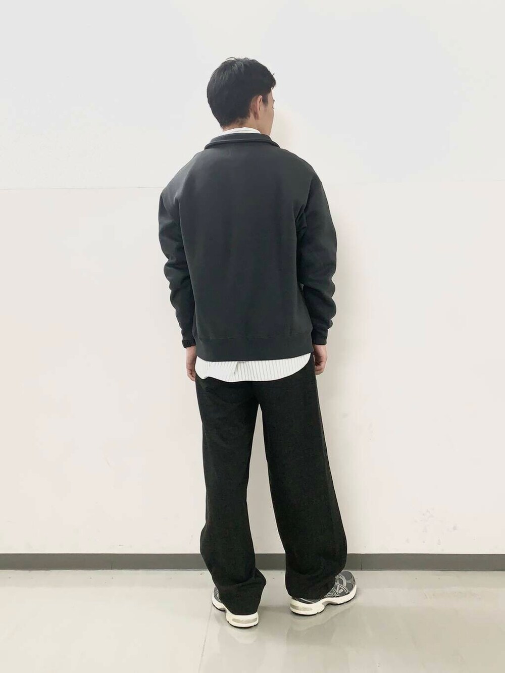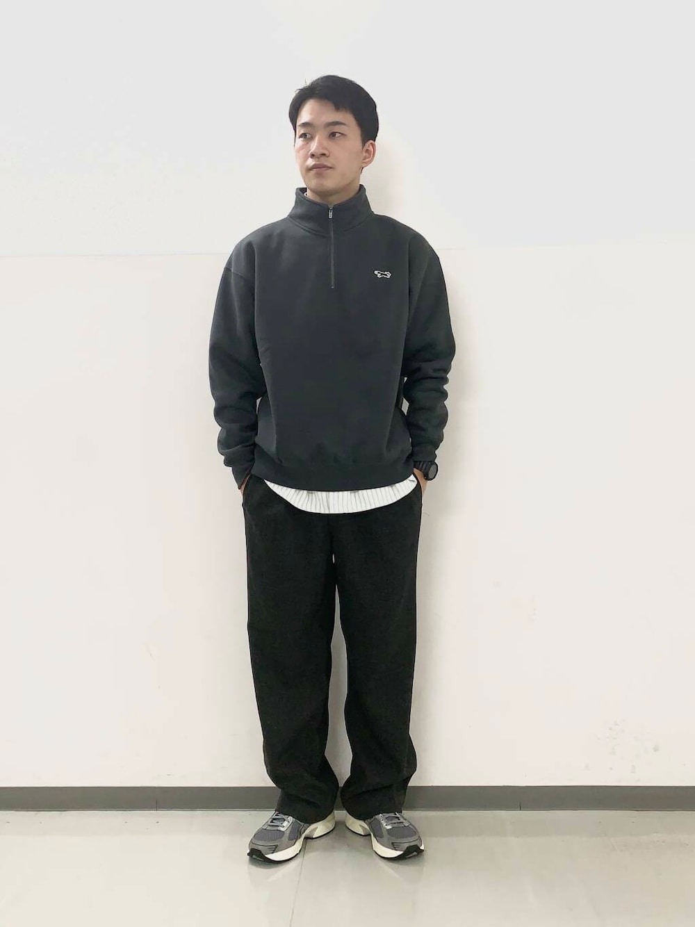 今回はハーフジップスウェットとウールライクパンツをつかってコーデを組んでみました。