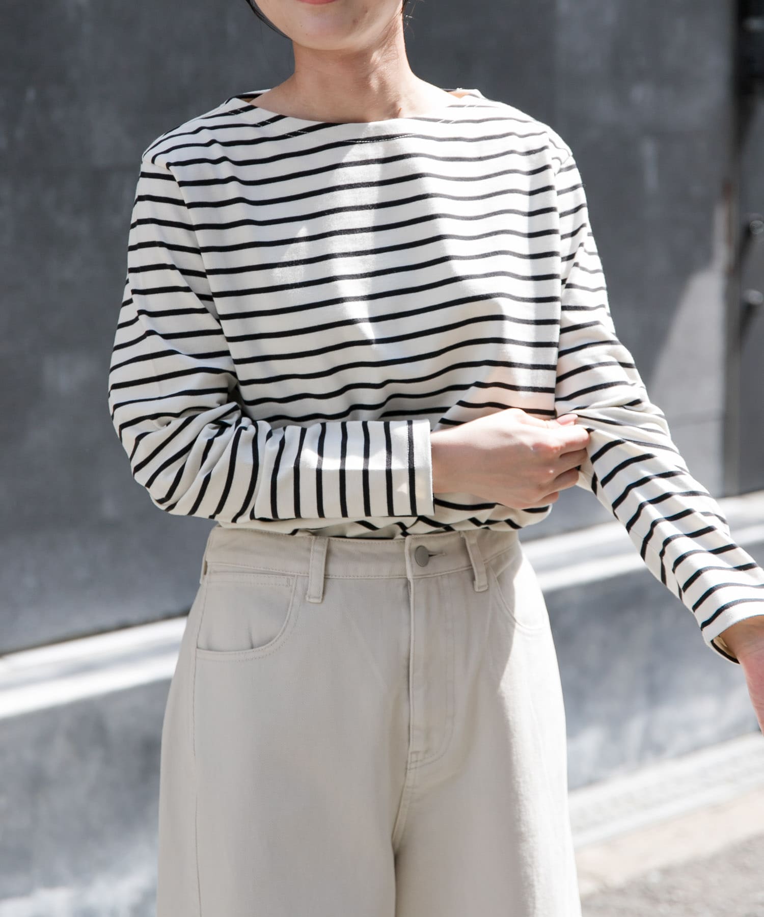 インナーとしても、1枚でも様になるボーダートップスです!サイズは2(大体Mサイズ程度)を着用しました。