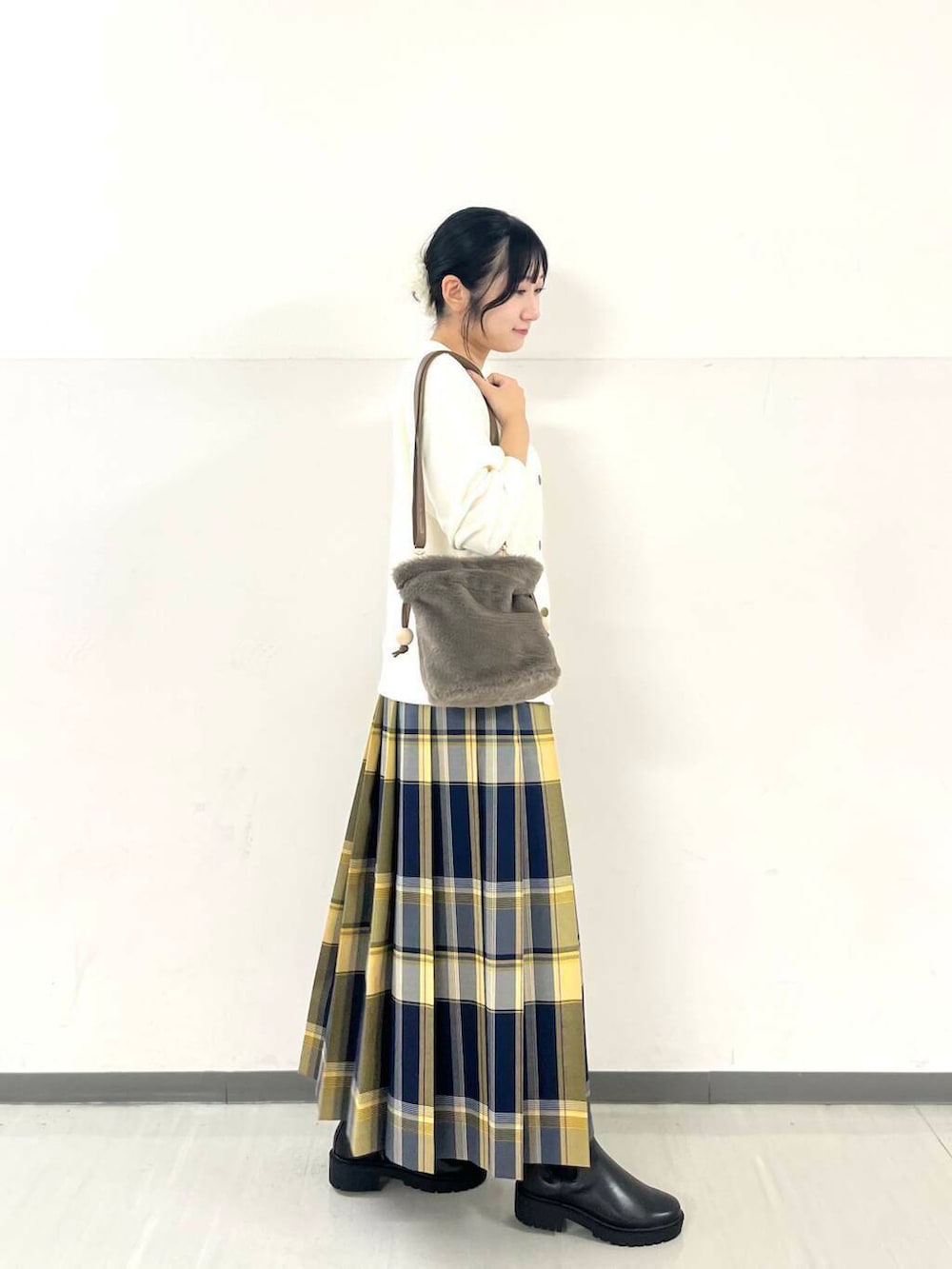 チェックのスカートは甘くなりすぎず、1枚でオシャレに決まるアイテムになっております!