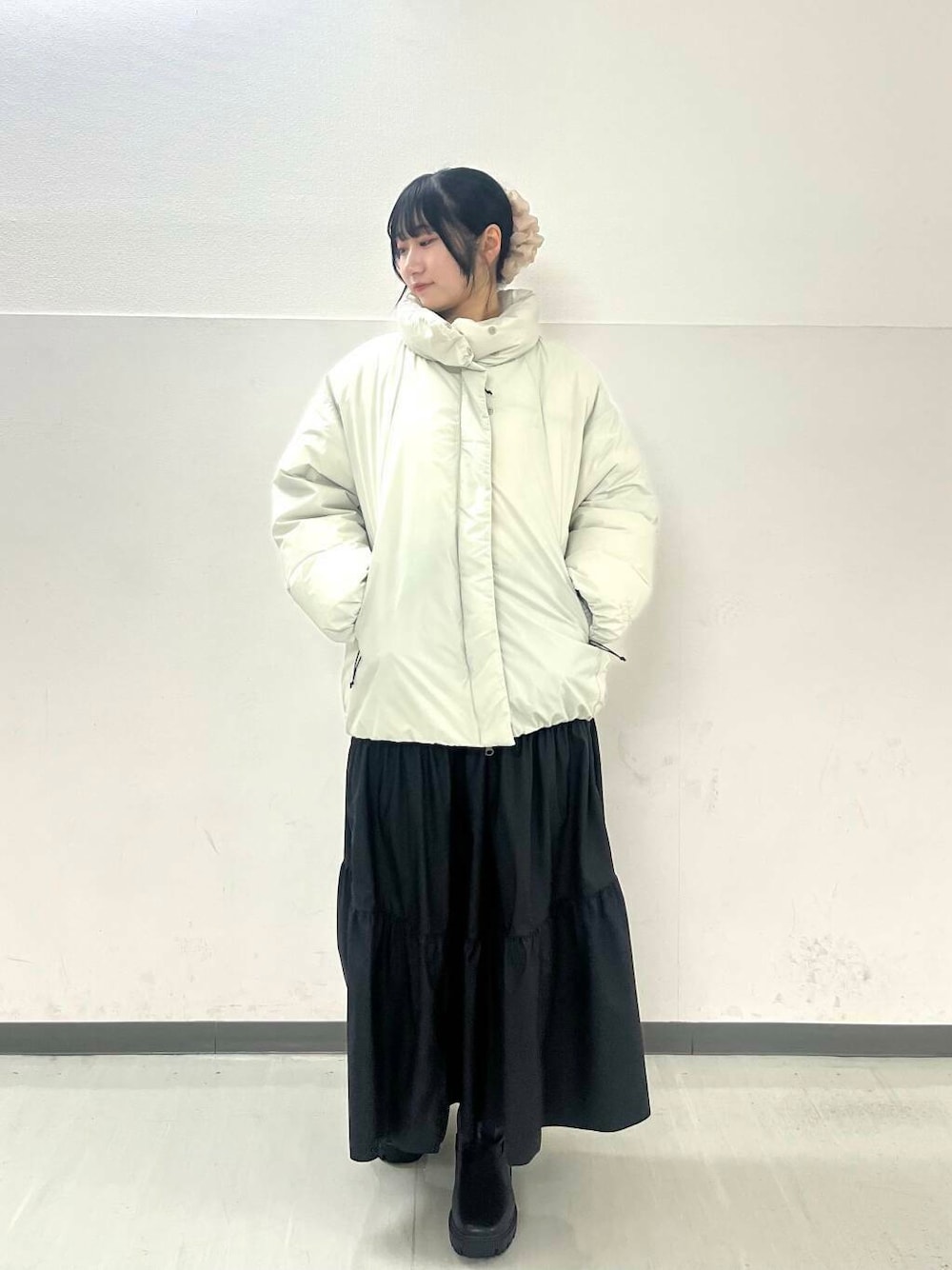 撥水機能が付いているスカートはボリュームが抑えられたティアードになっているため、カジュアルスタイルに合わせやすいスカートになっております!