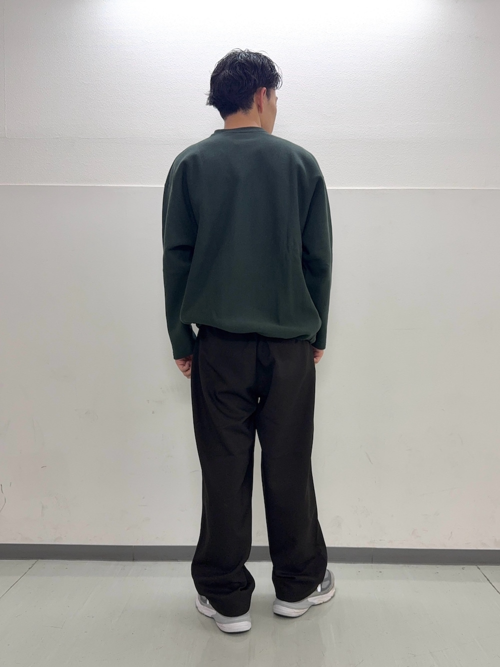 今回はチャンピオンのスウェットとEKALのウールライクイージーパンツを使ってコーデを組んでみました。