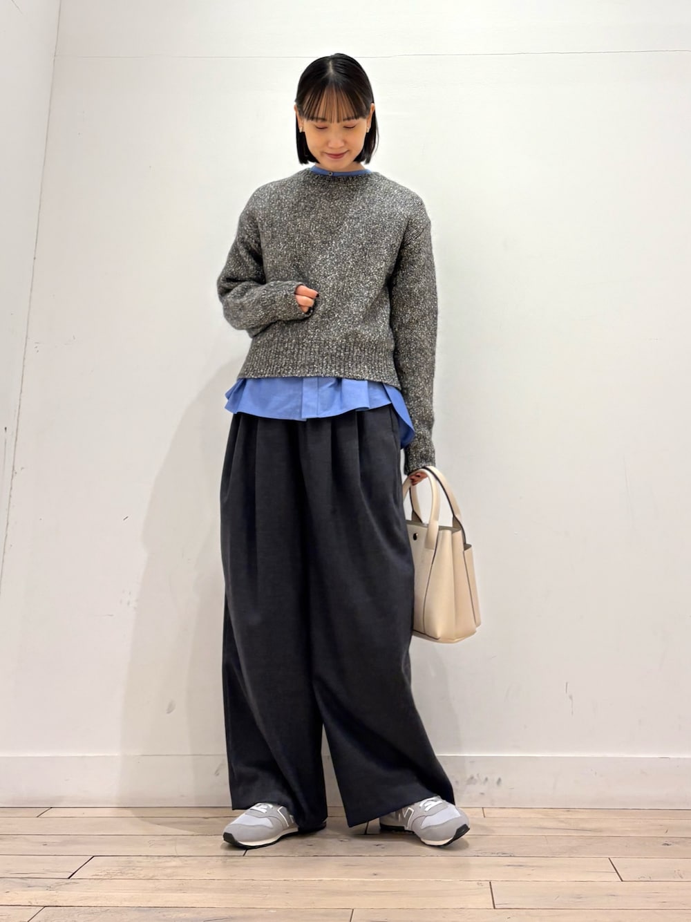 今回カーディガンの下はローファーに合わせて白にしましたが、パンツのグリーンと合わせたり色物を中に入れて透けさせてもかわいいです💚