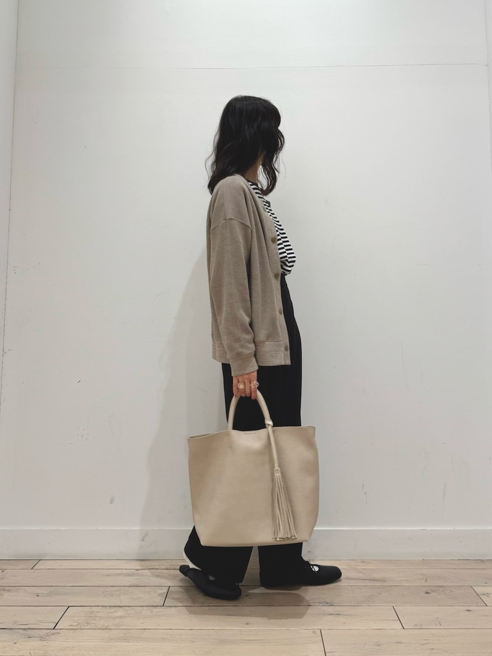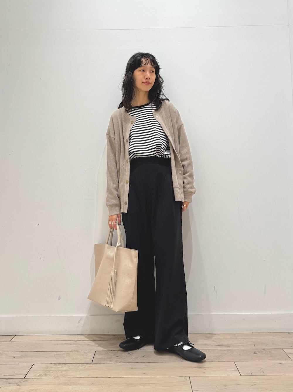 タックフライスのカーディガン、今の時期にとても丁度いい厚さで、程よいゆとりがあります☺️