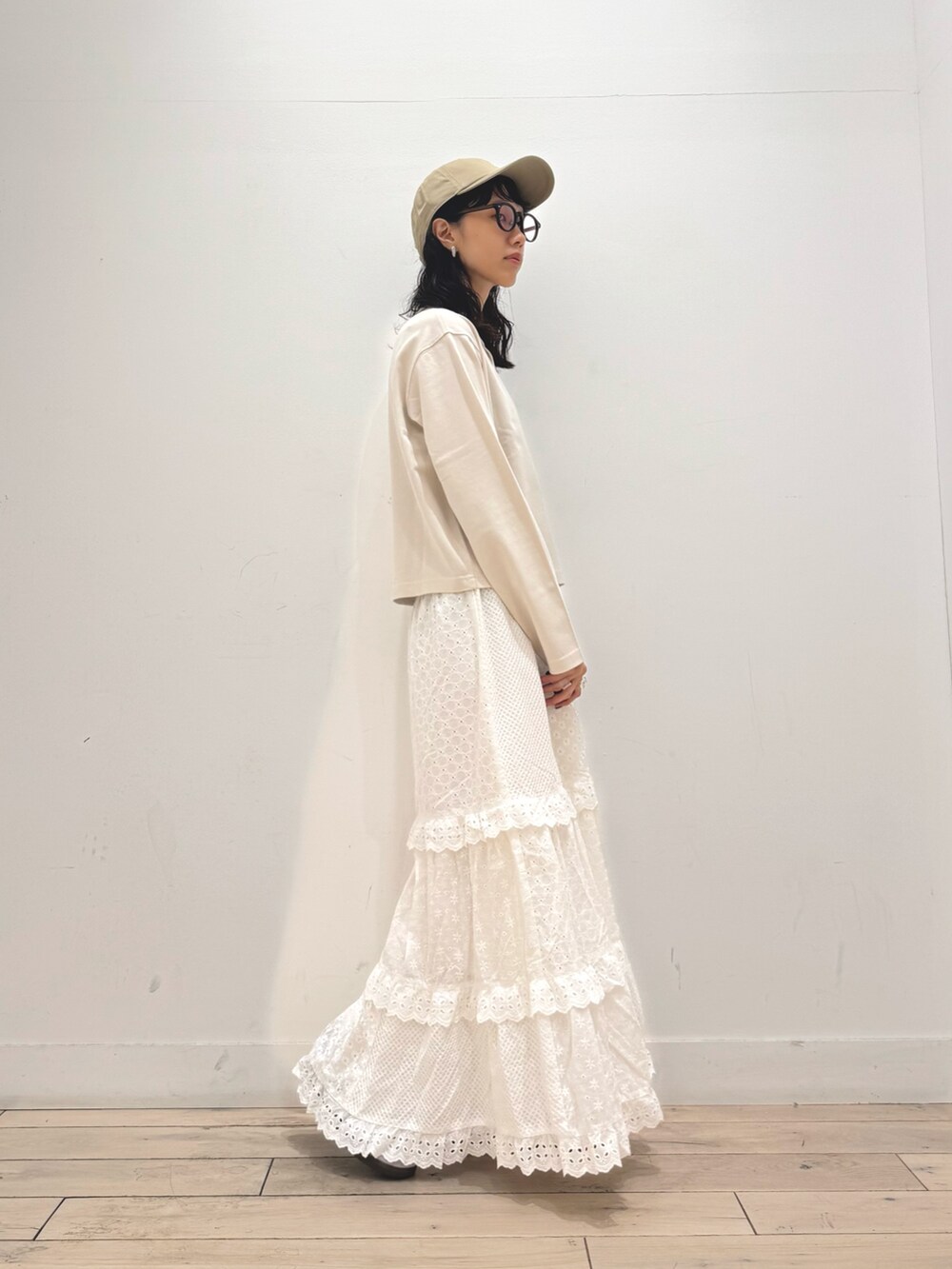 スカート、こちらの色は透け感あるのでペチコートの着用がおすすめです☺️