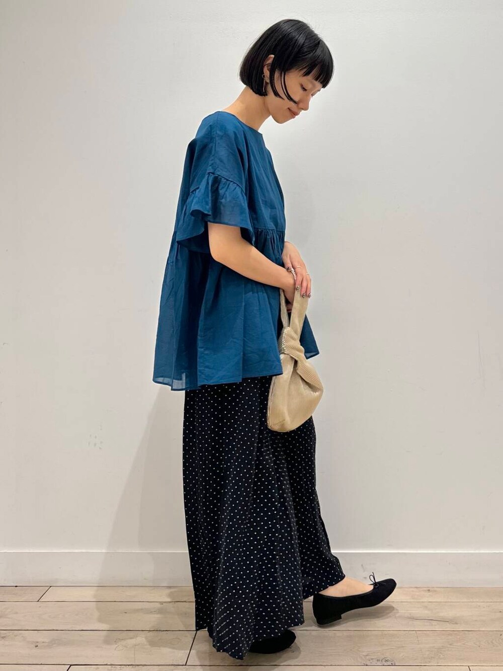 ブラウスのブルーの色味がキレイなので、是非店頭で見てみてください👀