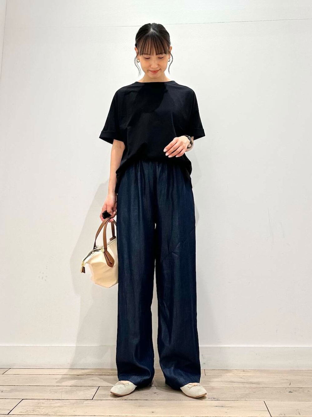 デニムのイージーパンツはさらっとした履き心地で、暑い時期にぴったりです^ ^