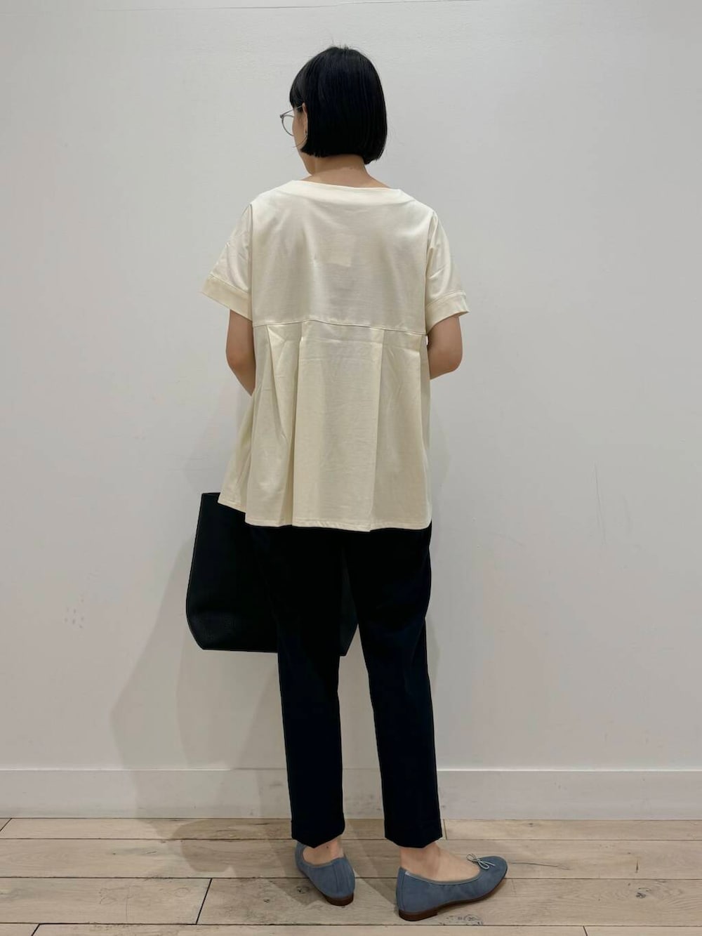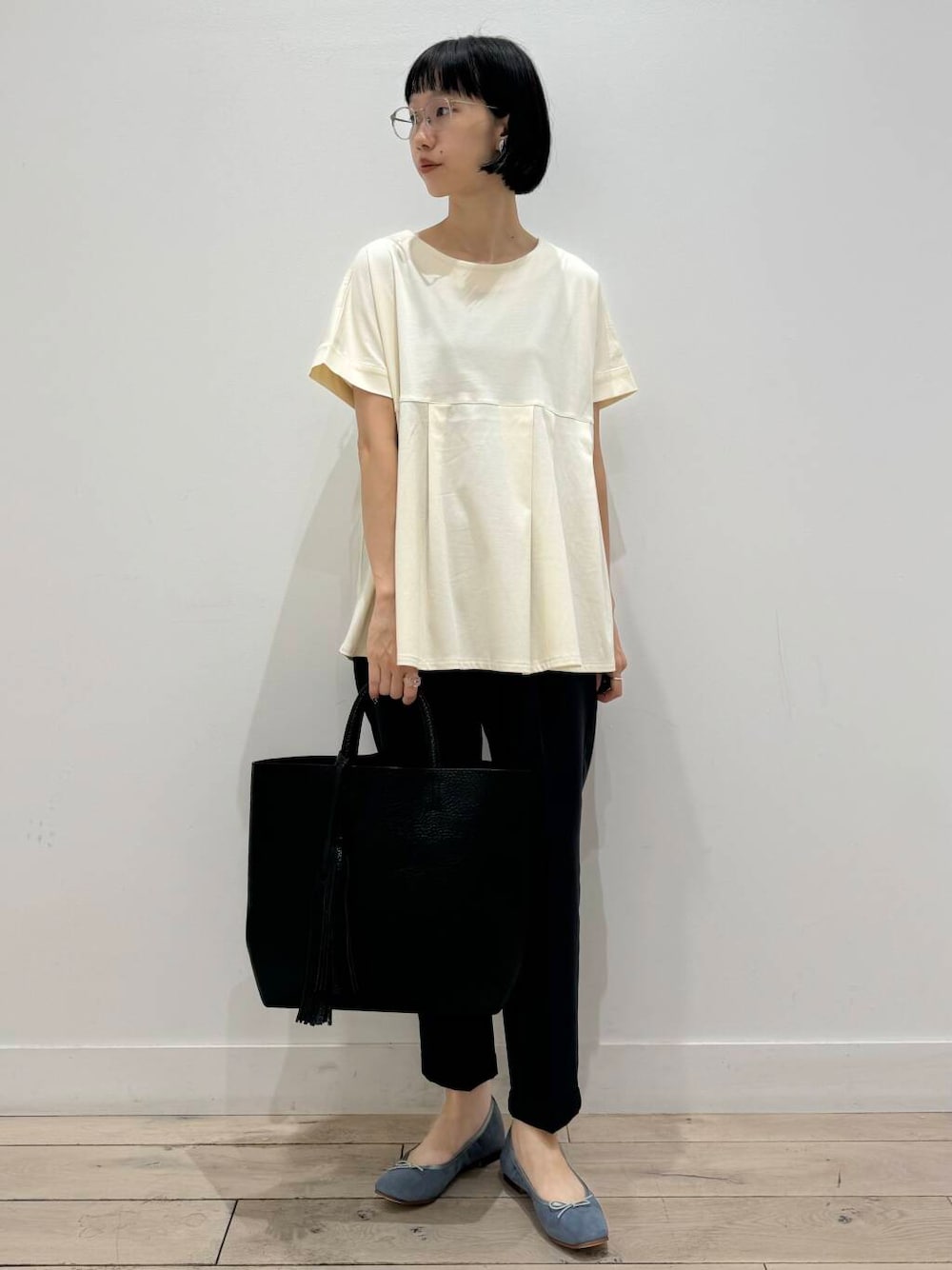 ウエストで切り替えがあるプルオーバーはシンプルですがデザイン性があり、生地もツルッとした綺麗め生地になってます◎