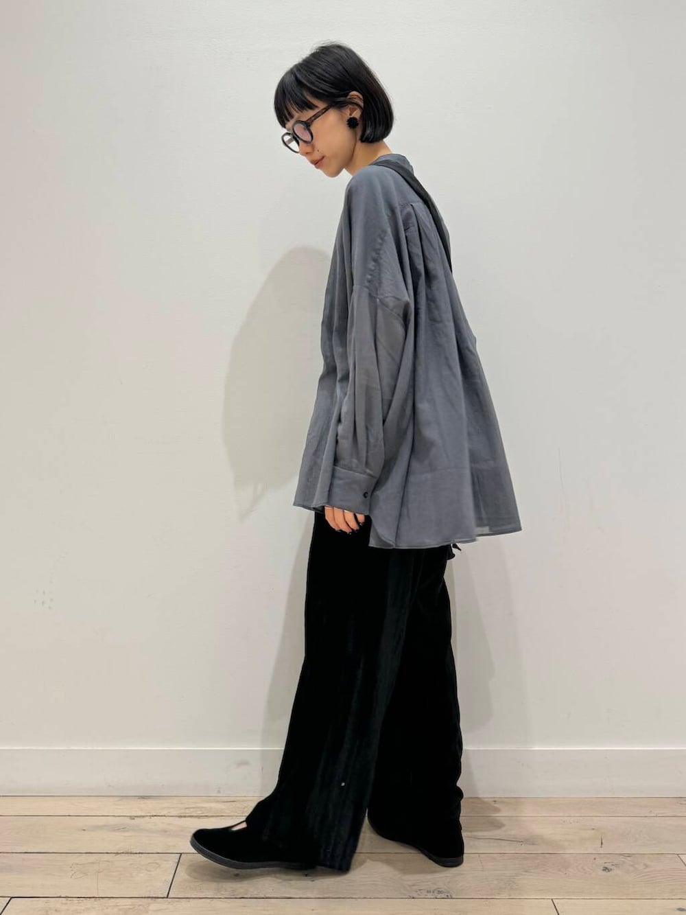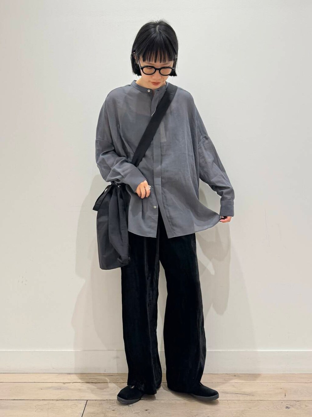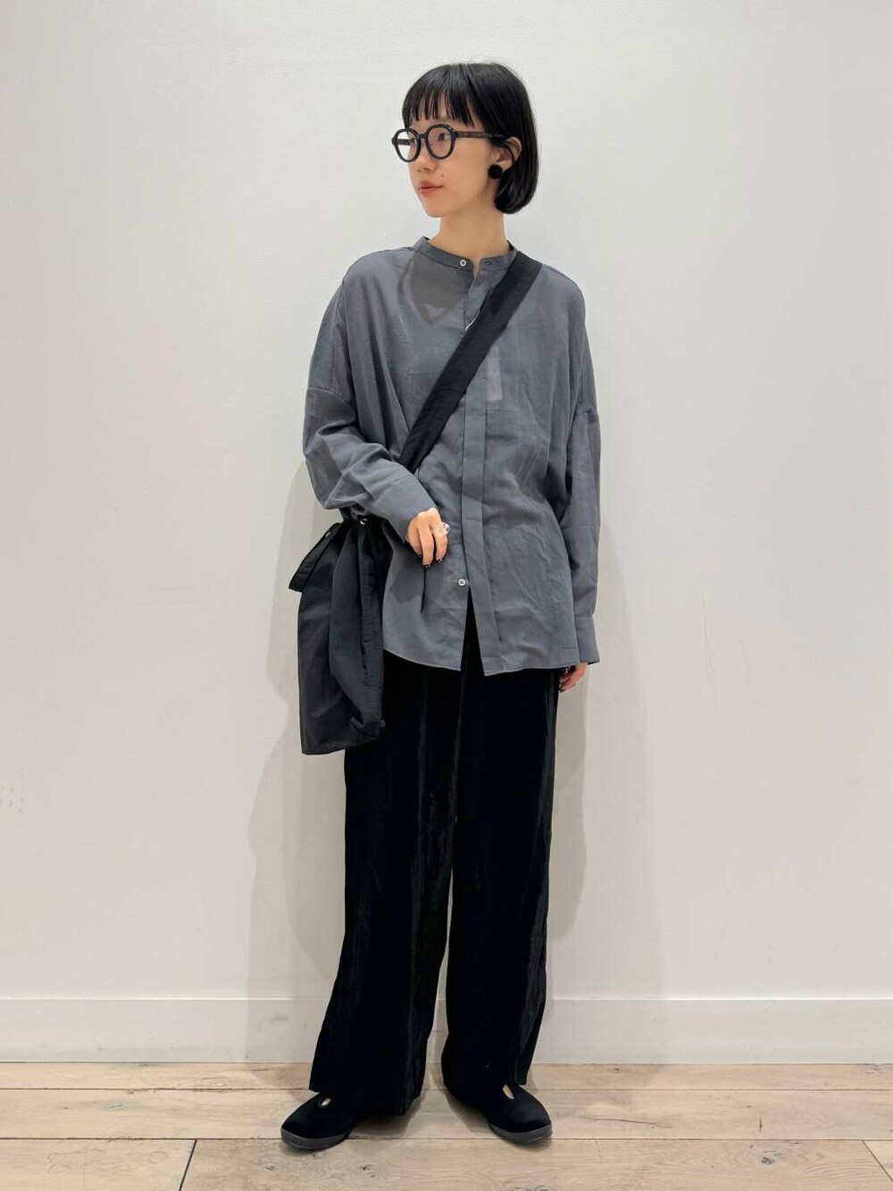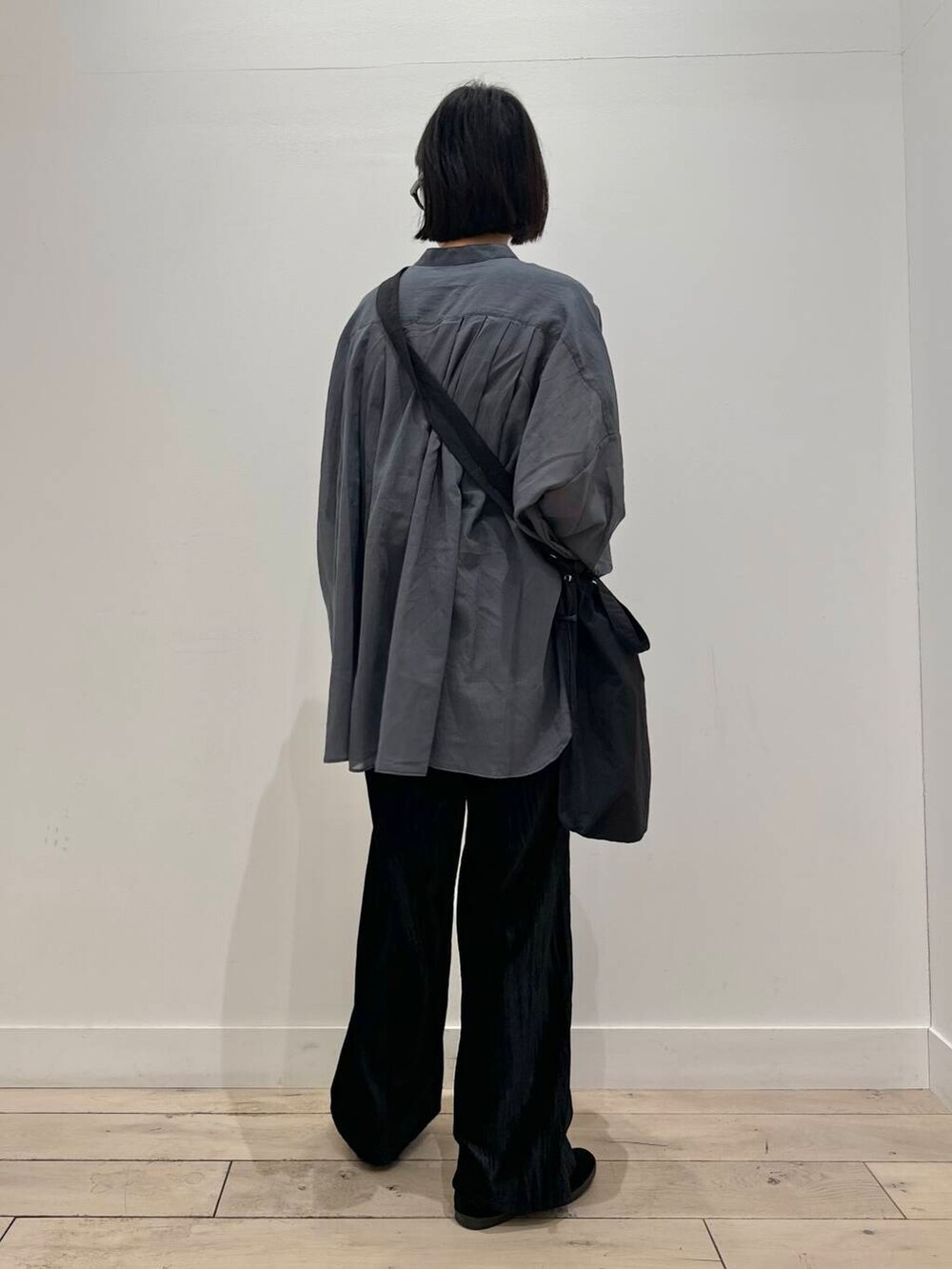 シャツは後ろにデザイン性があり、シンプルながらもこなれ感でます!透け感もあるので今から使いやすいアイテムです◎