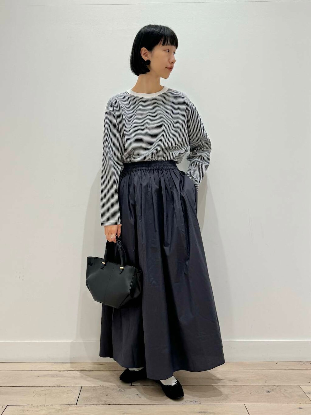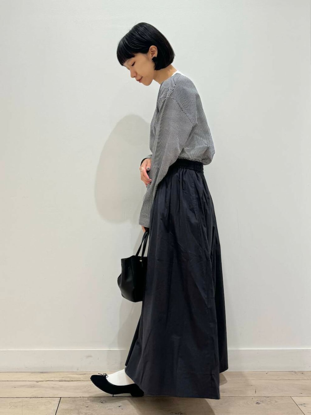 ゆるっと着たかったのでトップスのロンTはサイズ2を着用してます!スカートは広がりすぎずとても軽いので履いていて楽ちんです♪