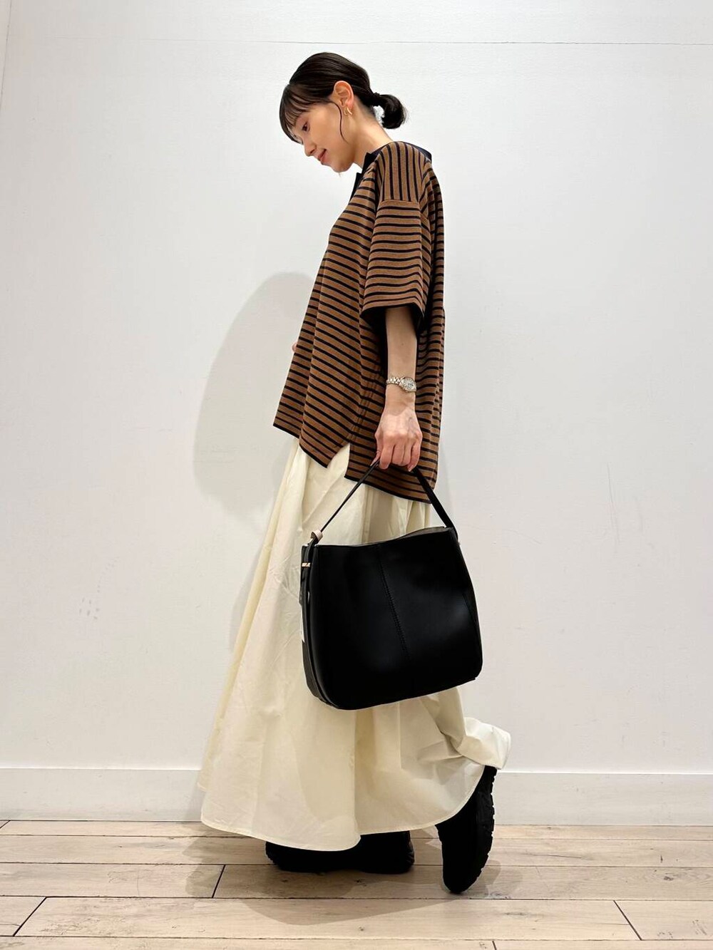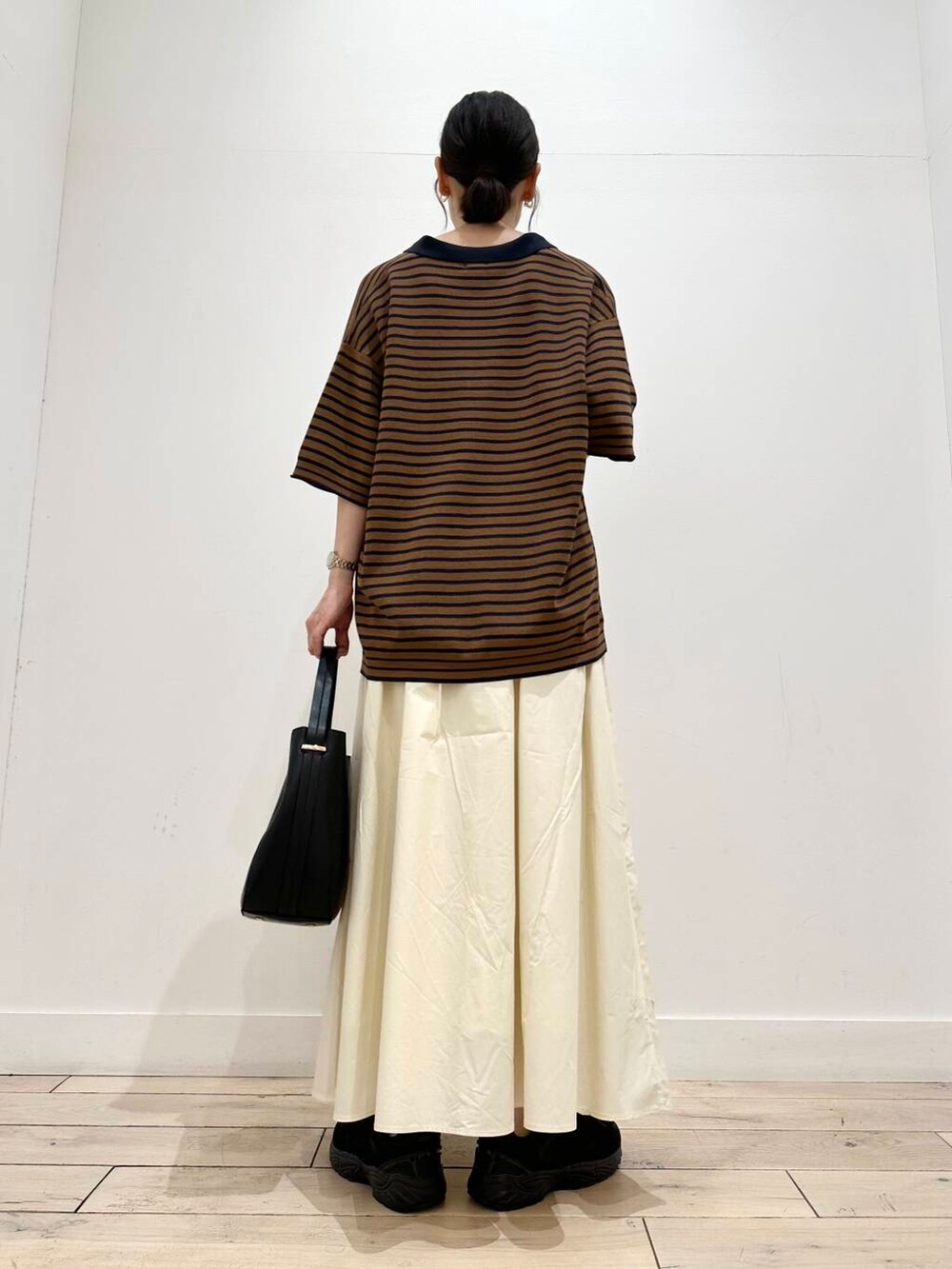 スキッパーネックになっているので、顔周りもスッキリ、抜け感のあるコーディネートに^ ^